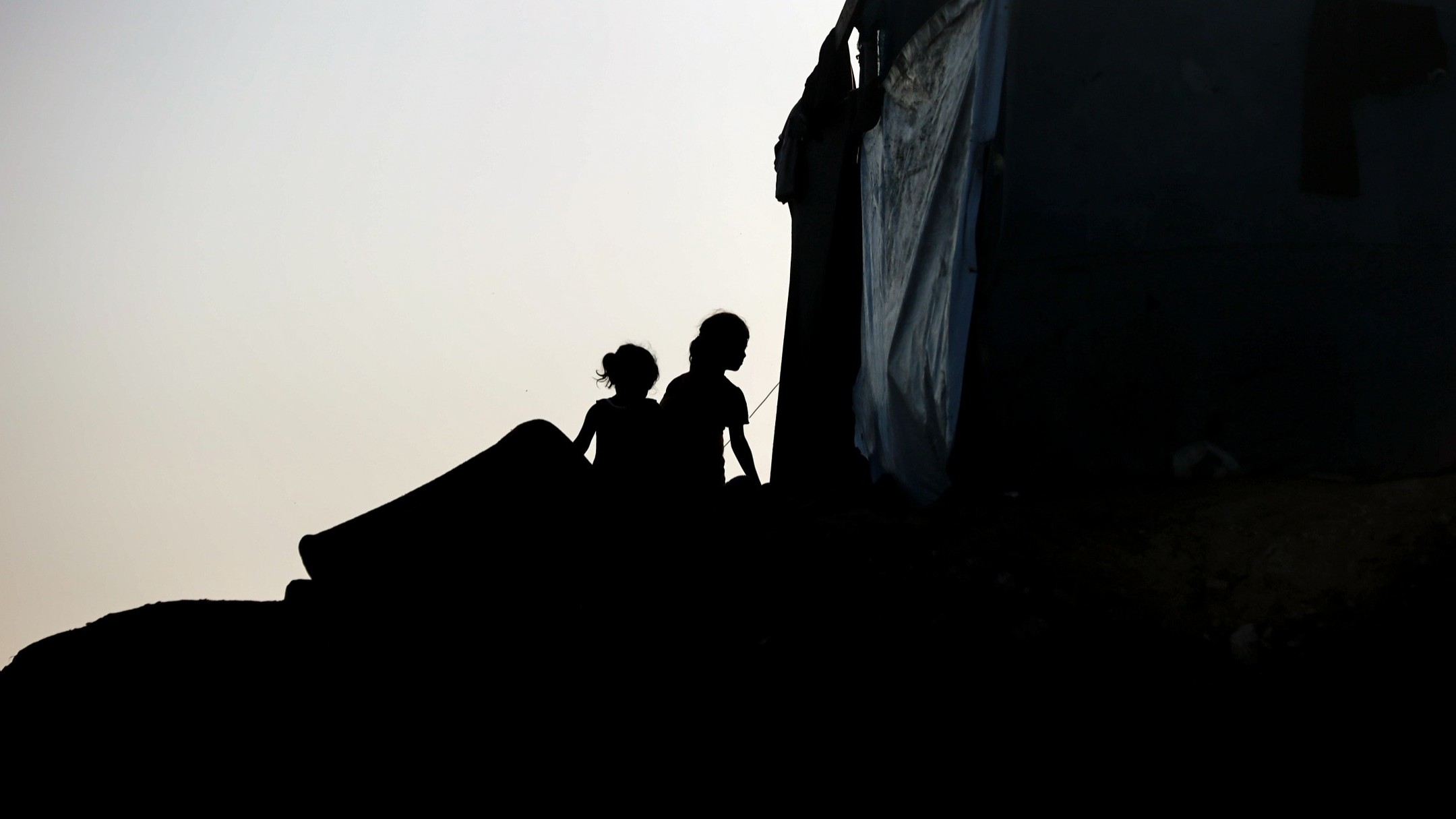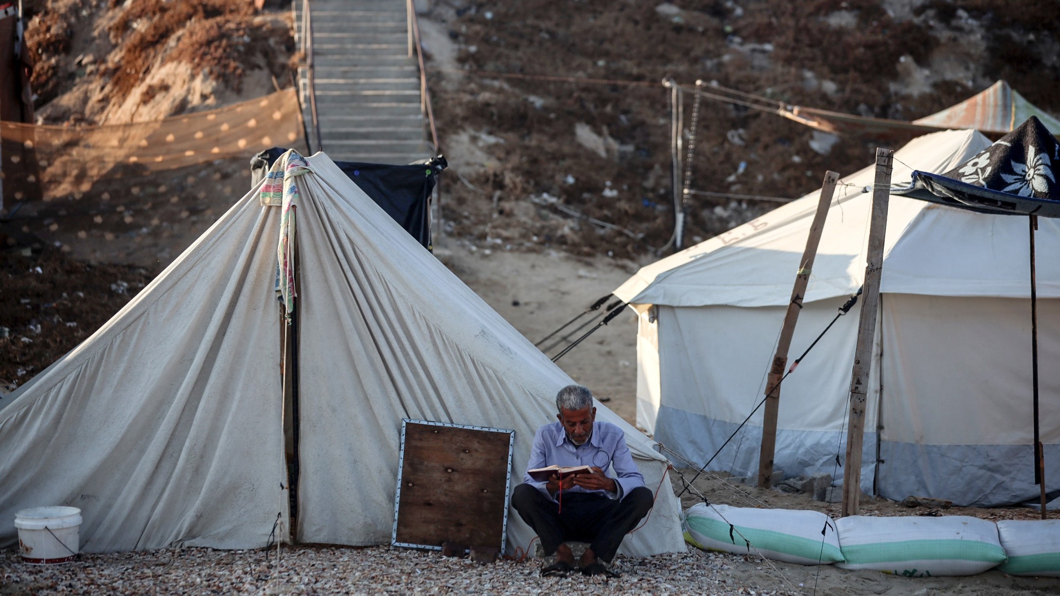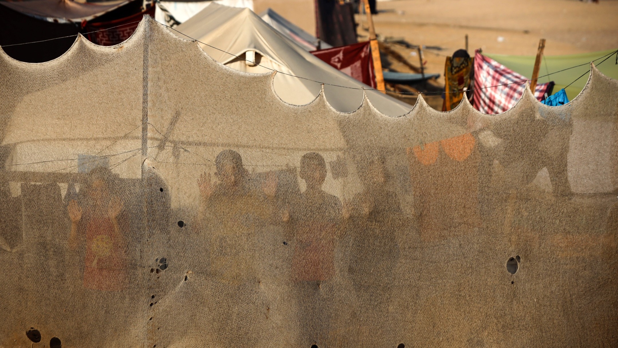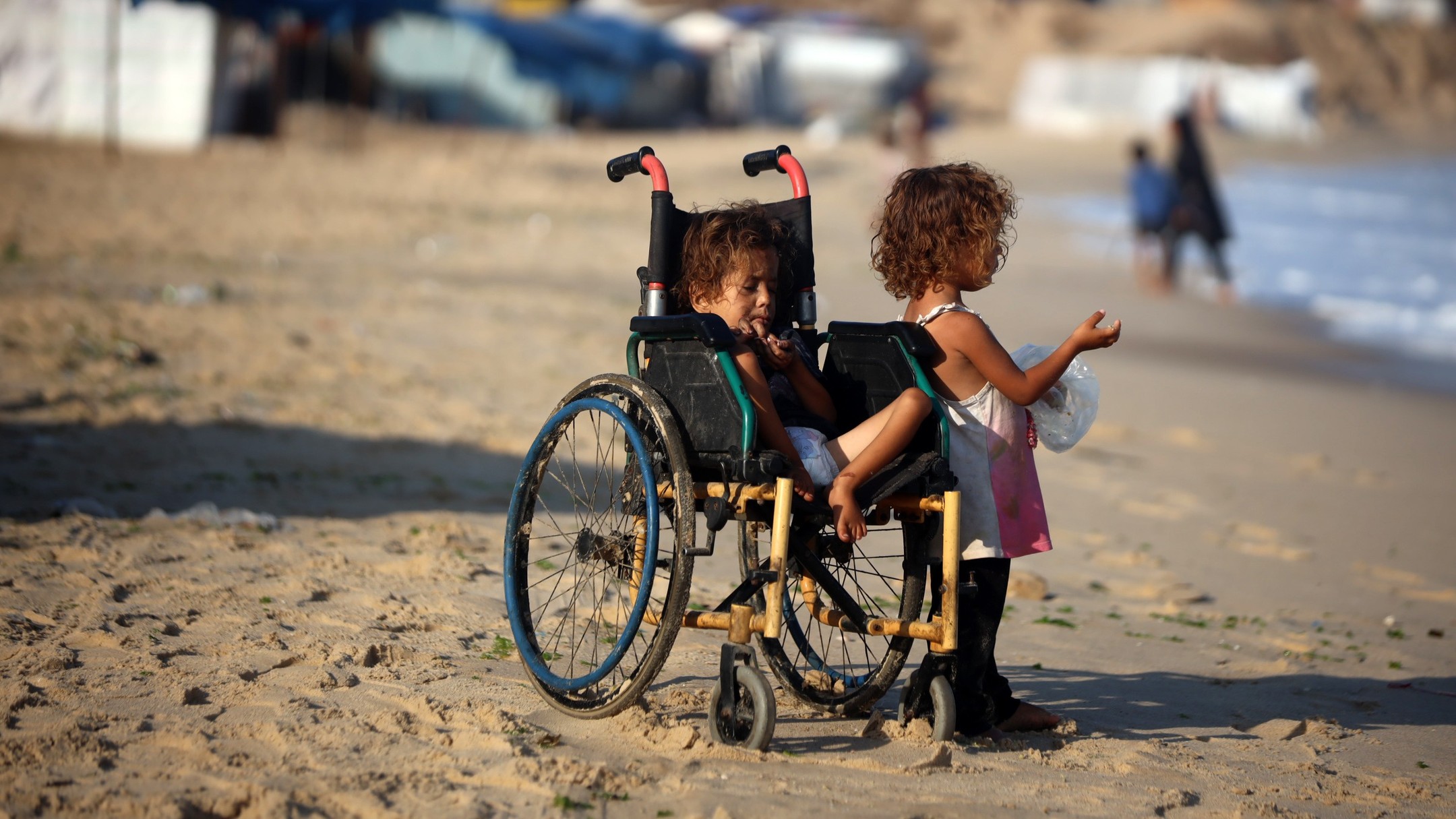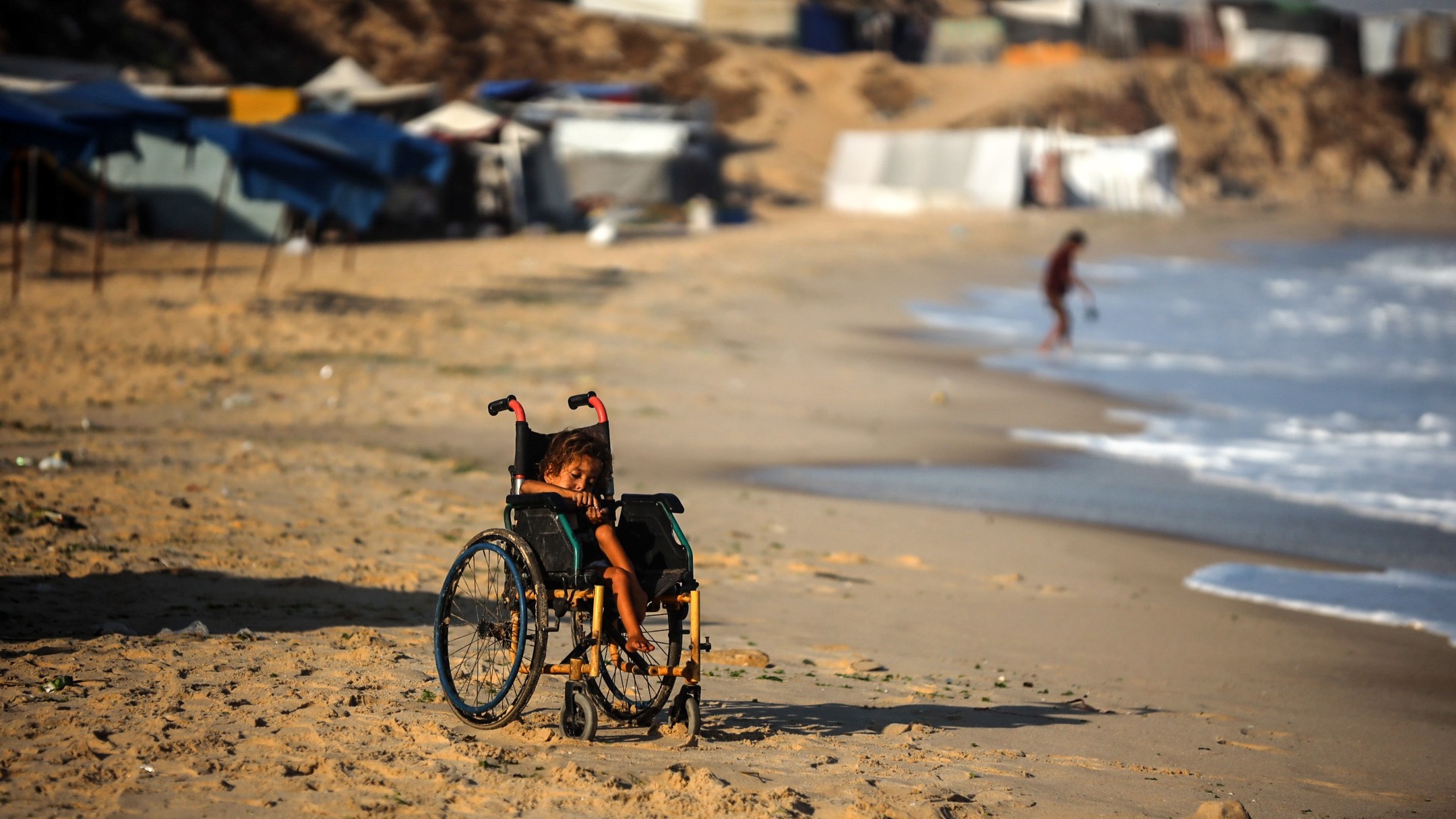 Displaced Palestinians are seen on the beach photo by majdi fathi