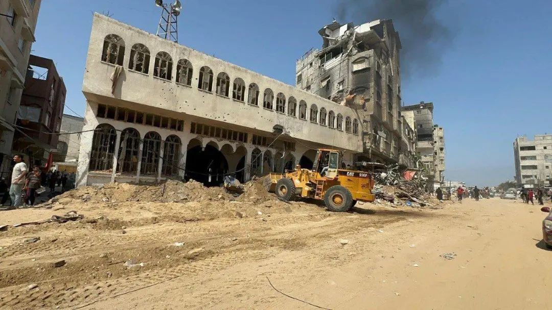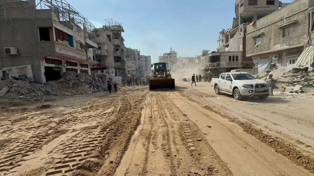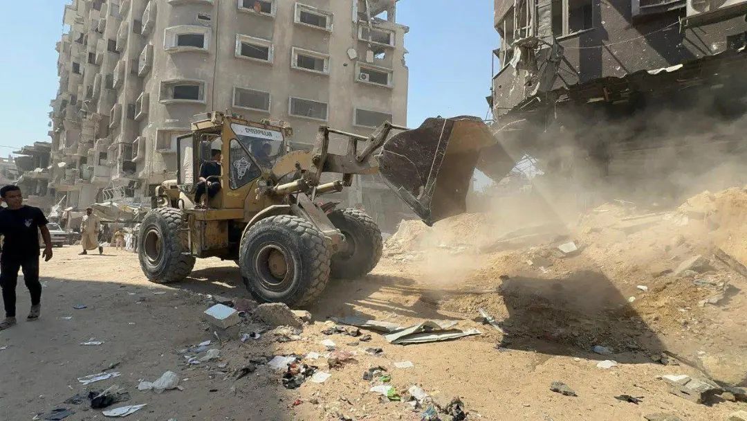 Despite severe shortages of equipment, Palestinians in Khan Yunis tirelessly work to clear rubble and reopen roads following the devastating Israeli occupation invasion that impacted most of the city's neighborhoods and infrastructure.