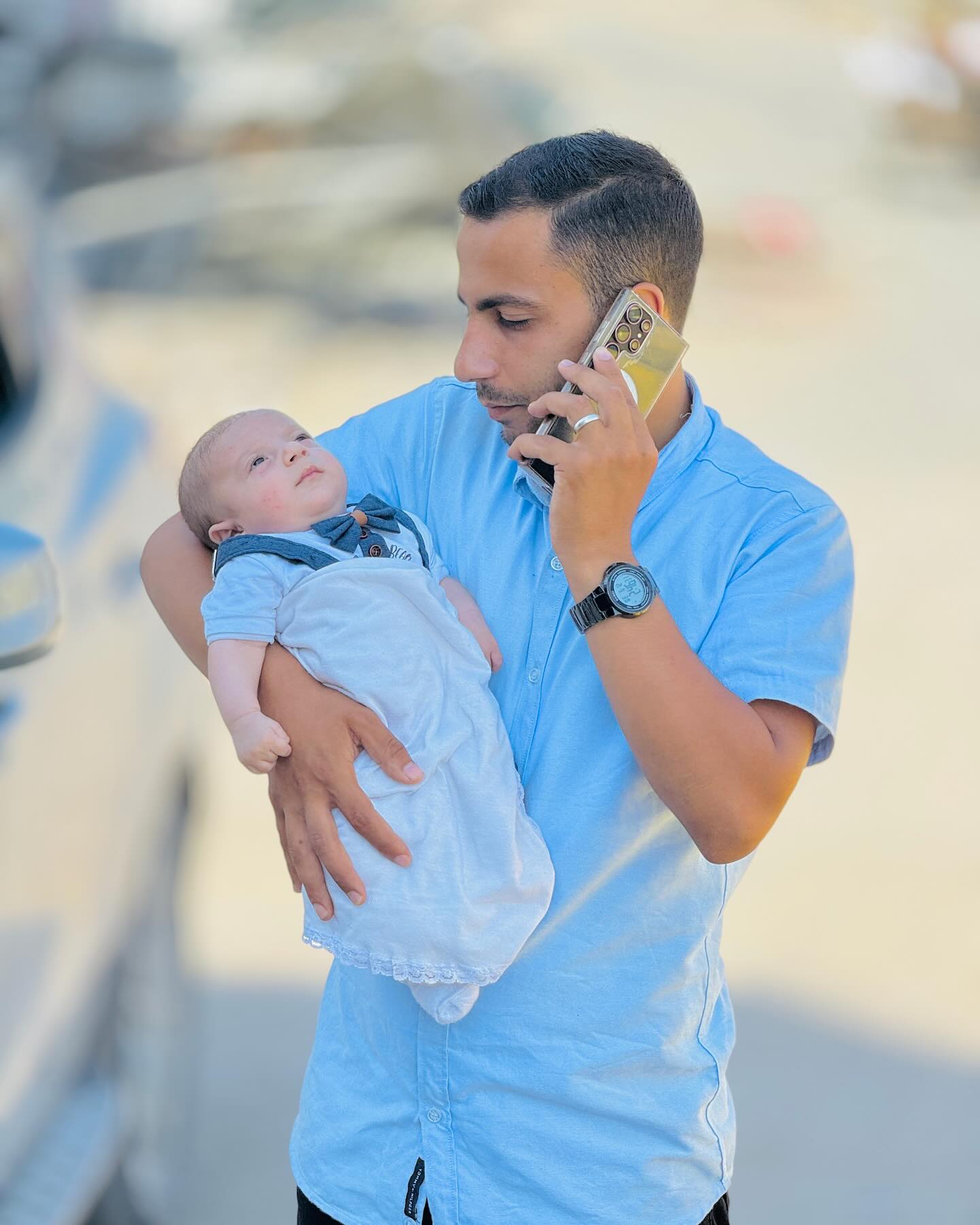 في هذه الحرب كأن الزمن لا يُعرَف إلا بعدد أيامها! لم نعد والله نميز بين الأيام وتواريخها إلا أيام الحرب نعرف عددها وتفاصيلها، فهذه الأيام تطحن عظامنا وتقتات على أمعائنا الخاوية! هذا ابني #صلاح وُلد في هذه الحرب واشتداد المجاعة، لم أره إلا مراتٍ قليلة، تفاجأت به إذ أصبح عمره شهرين!! لم أصدِّق وأنا أسمع أن عمره شهران! كيف مضت هذه الأيام الثقيلة على هذا الجسد الصغير؟! حملته بين يدي أتأمل قسمات وجهه البريء، كيف شهد هذا الطفل هذه الأيام الصعبة ونجى هو وعائلتي مرَّاتٍ عِدة بلُطف الله وعنايته. أرجو يا صغيري الجميل أن تنتهي هذه الأيام الصعبة ونجتمع بلا فراقٍ ولا تشريدٍ ولا تجويع، آمنين مُطمئنِّين، أعرف تفاصيل نموك الجميلة وحركاتك الجديدة وملامحك الصغيرة وهي تتشكل تزداد جمالًا وتضفي على قلوبنا بهاءً وسعادة.