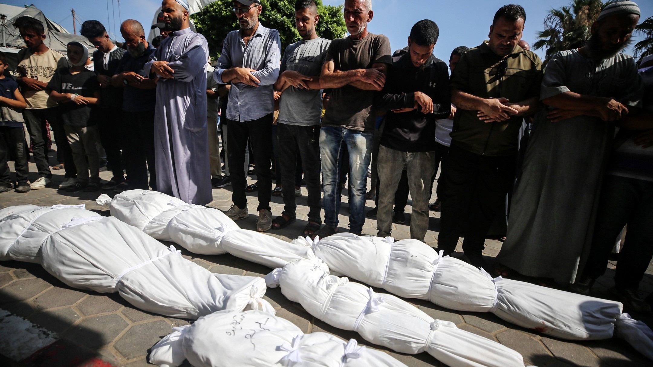 Mourners react next to the bodies of Palestinians killed in Israeli strikes, at Al-Aqsa hospital in Deir Al-Balah, in the central Gaza Strip, June 25, 2024. photo by majdi fathi