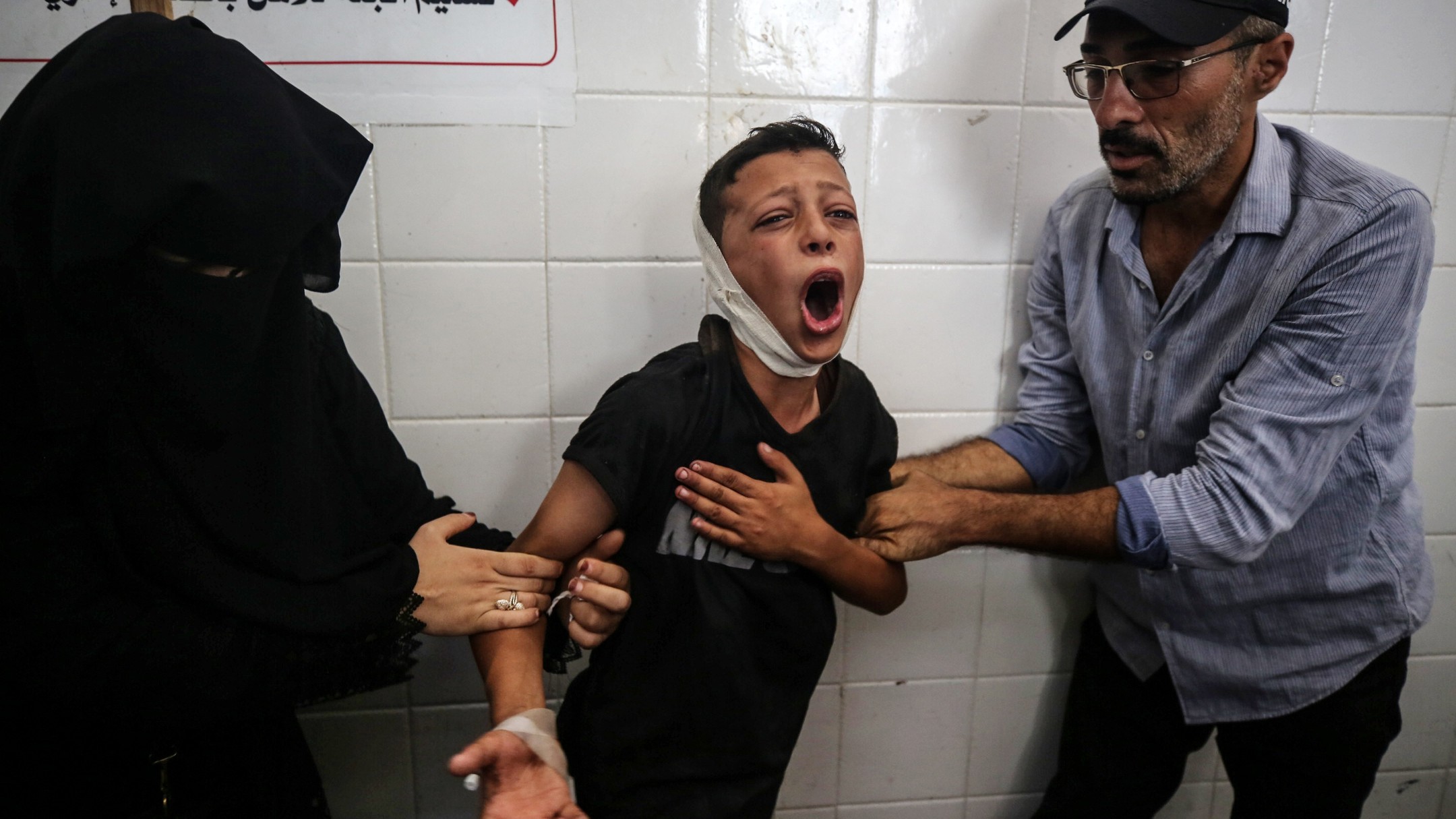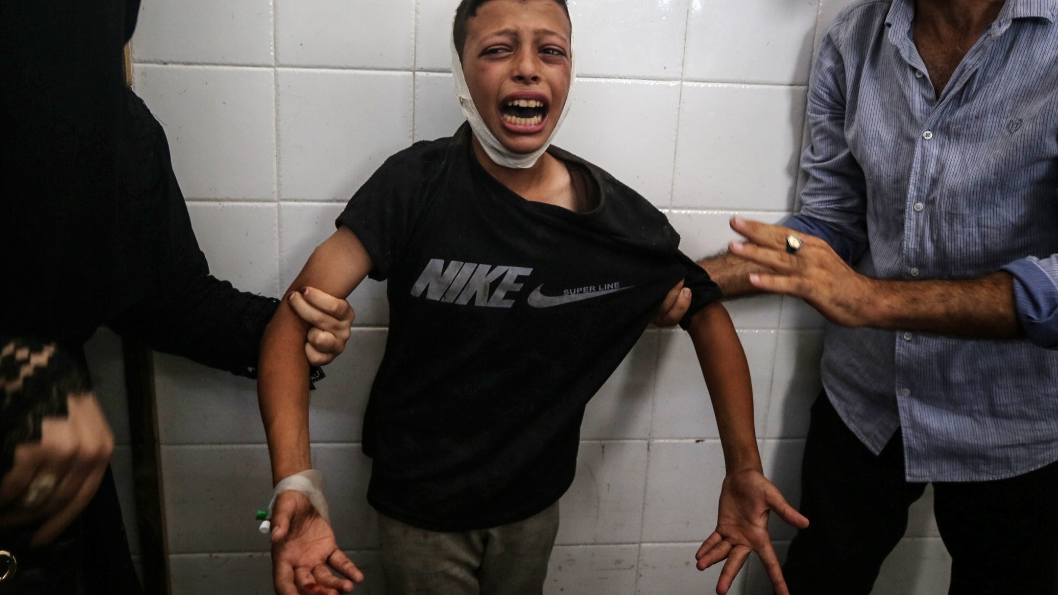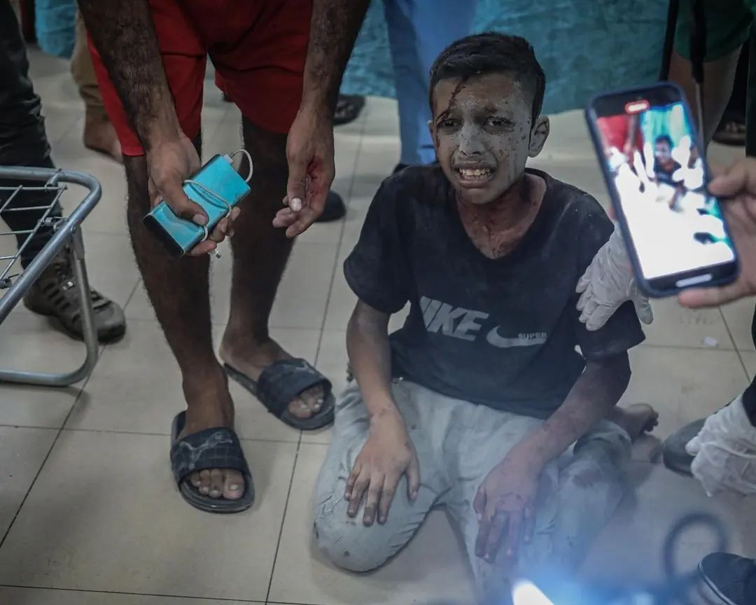 الطفل هيثم الأشقر 8 سنوات اصيب في قصف إسرائيلي على منزلهم في مخيم النصيرات مما أدى لبتر في يده. The child, Haitham Al-Ashqar, 8 years old, was injured in an Israeli bombing of their house in the Nuseirat camp, which led to the amputation of his hand.