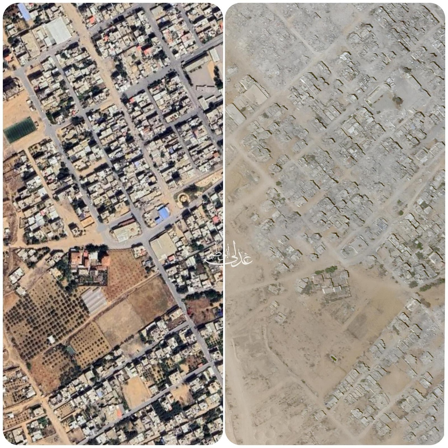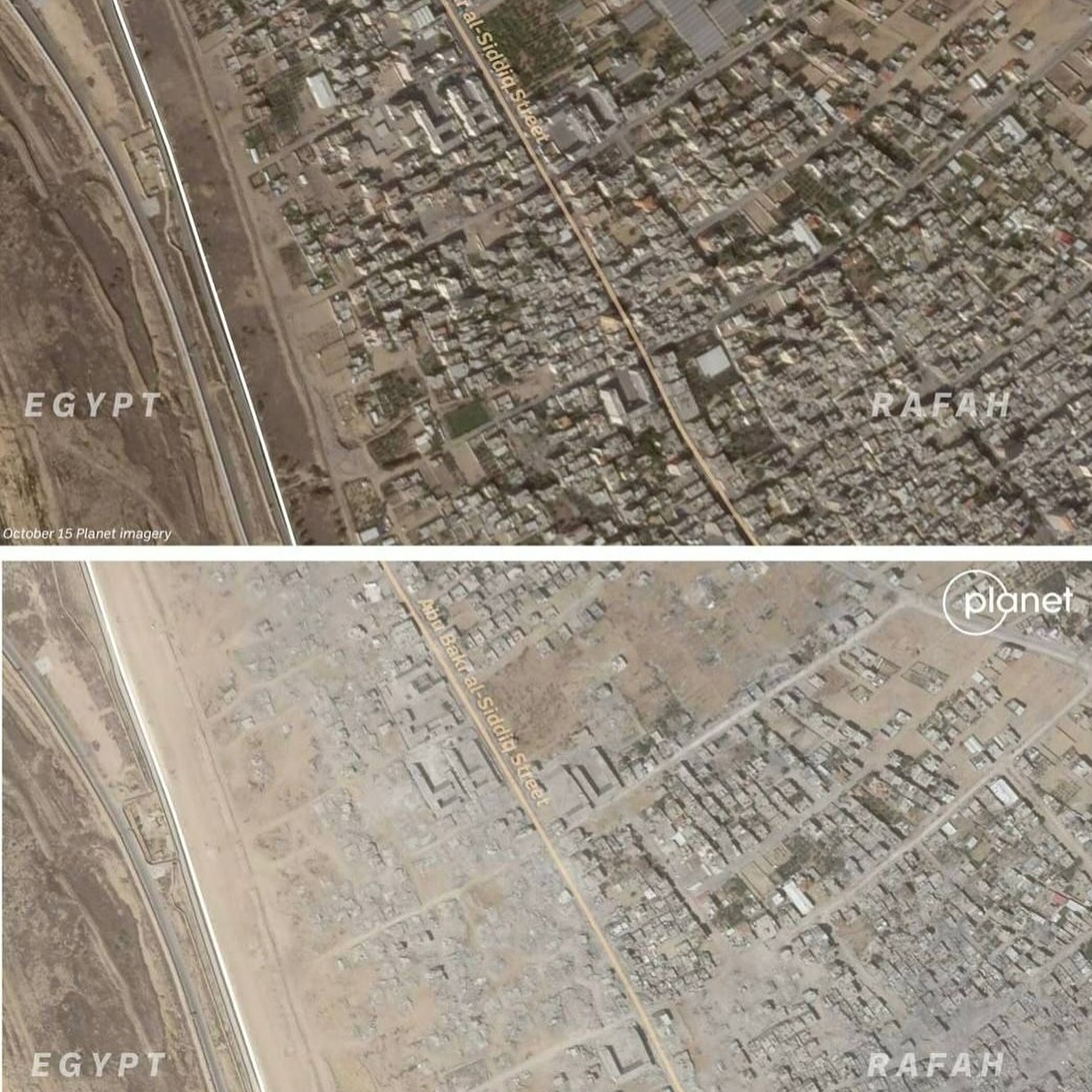 Rafah city before and after the Israeli military invasion.