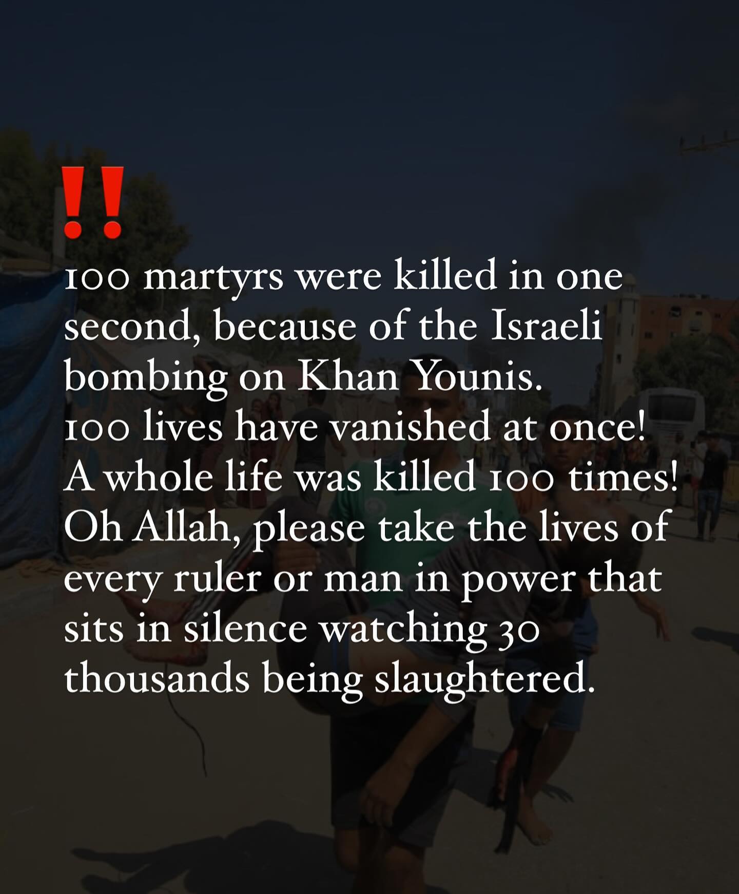 I hope no one who is responsible for this, be it israel, the usa, or the arab world finds peace in their life. And I hope Gaza remains a thorn in every conqueror’s throat, in every colonizer’s throat. I despise you, world.