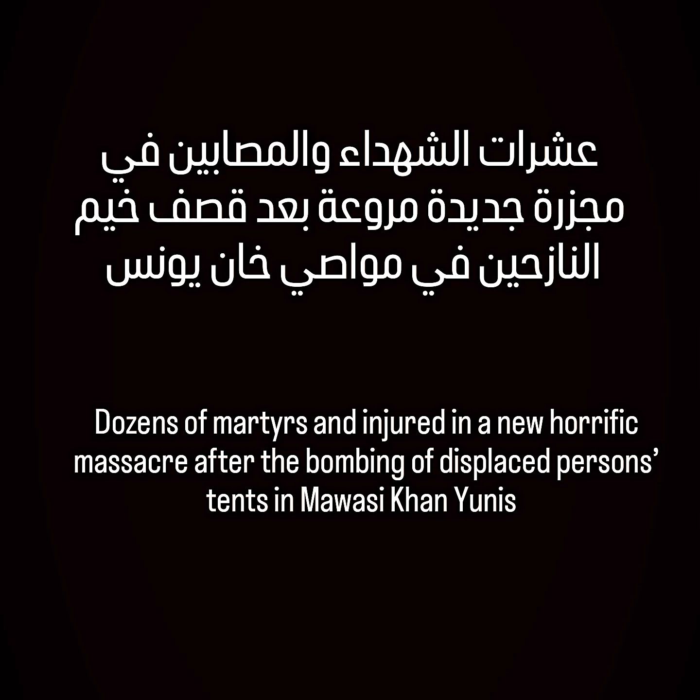 8:17 PM @anat.international israel spills our blood like it’s water. israel burns Palestinians in their tents that they were displaced into, in the designated “safe areas” of the Gaza Strip.