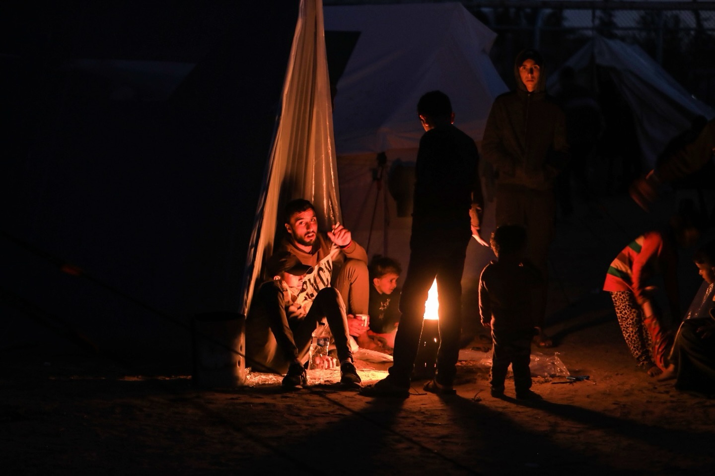 A Palestinian sits in front of his tent in Mawasi Khan Yunis after a war that has been going on in the Gaza Strip for more than 9 months. Photo /Yasser Qudih فلسطيني يجلس امام خيمته في مواصي خان يونس بعد حرب تستمر على قطاع غزة منذ اكثر من9 اشهر تصوير /ياسر قديح