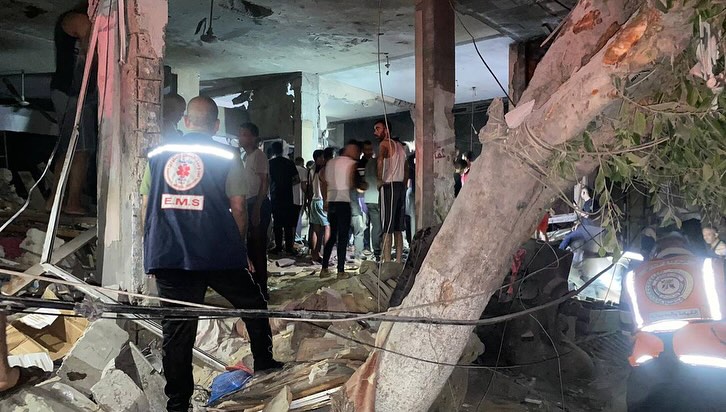 An Israeli air strike hit a residential tower east of Nusairat refugee camp, central Gaza.