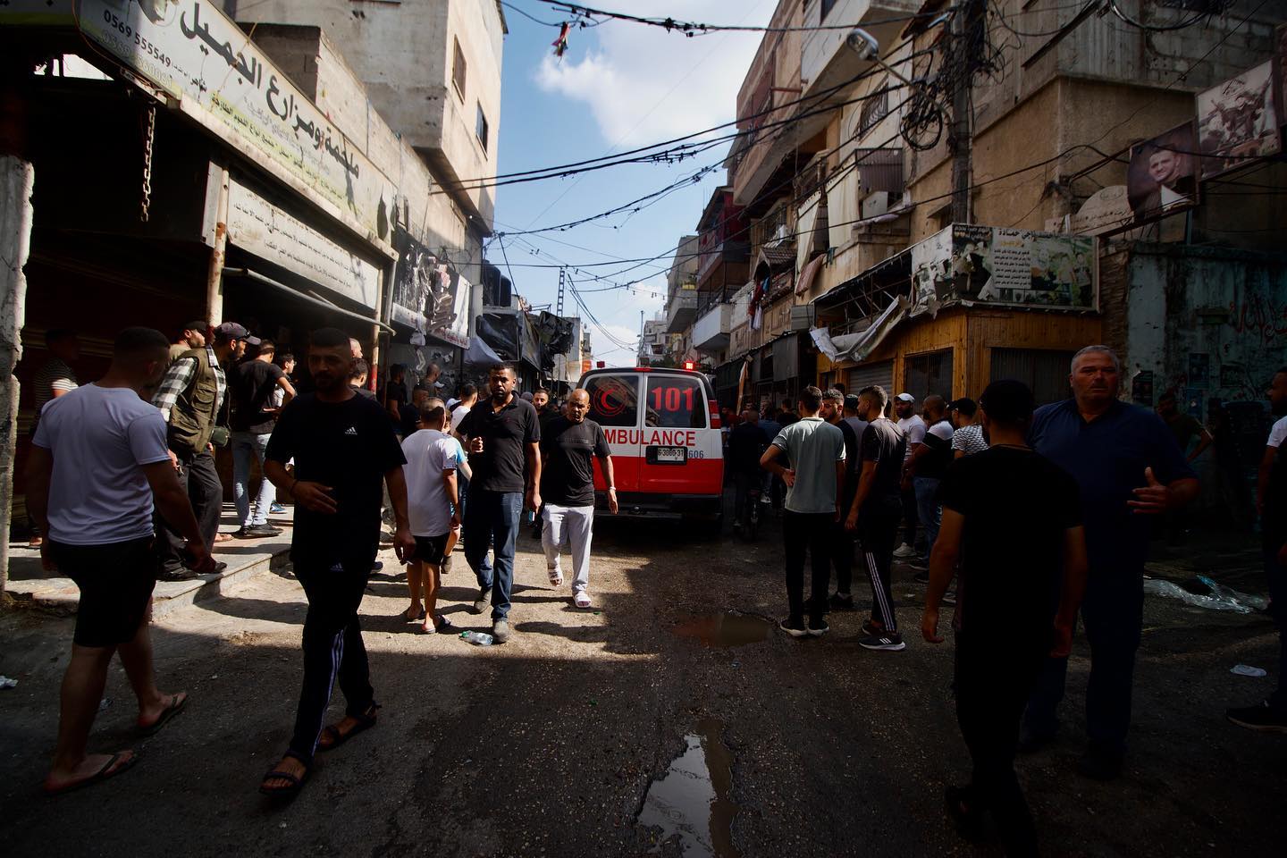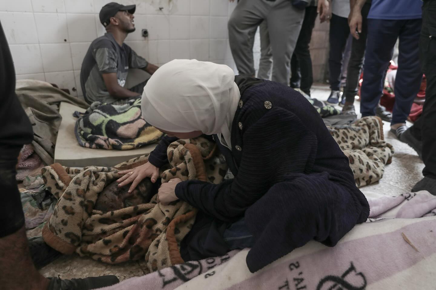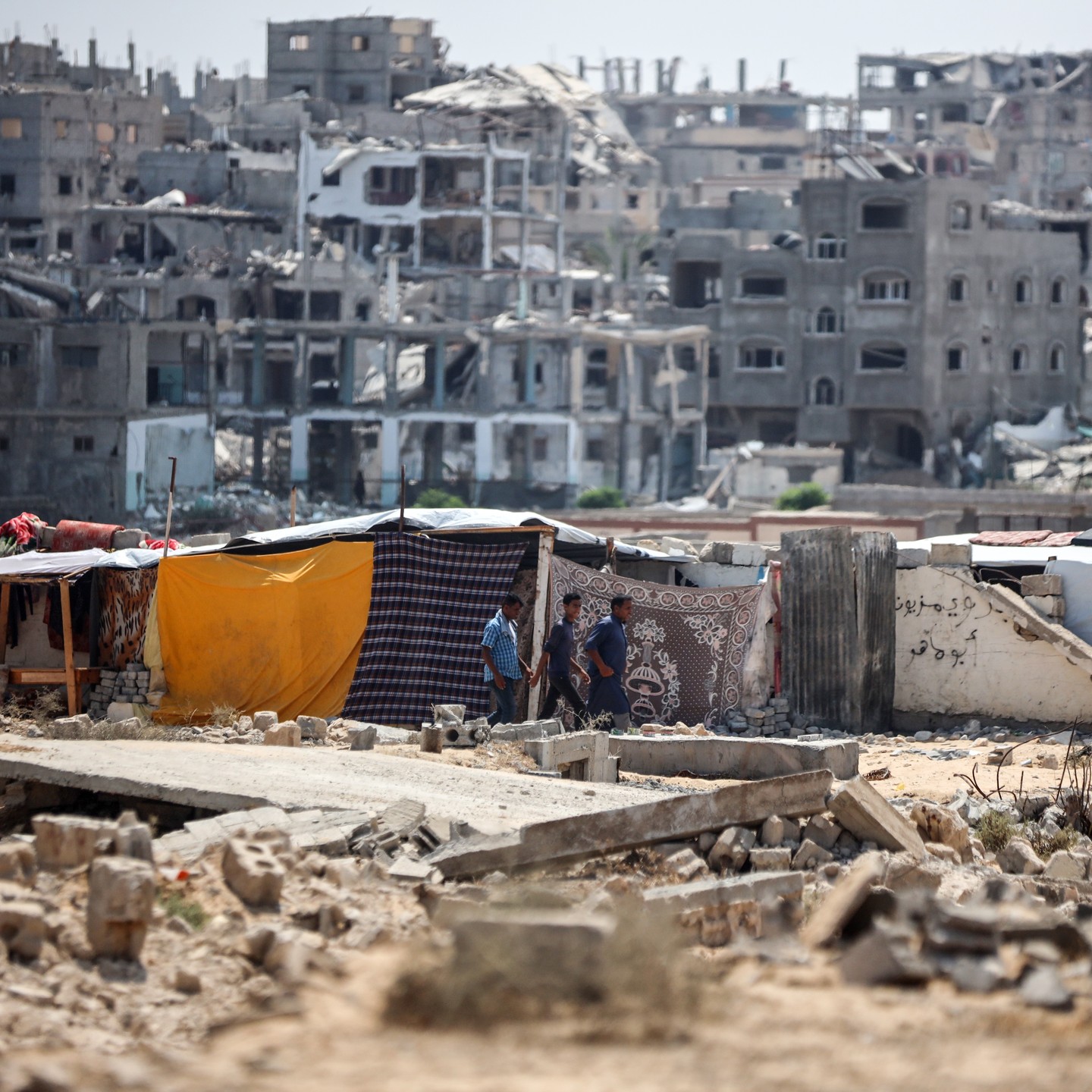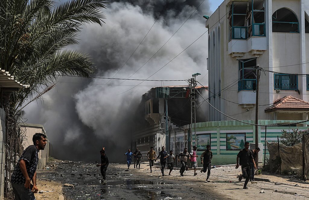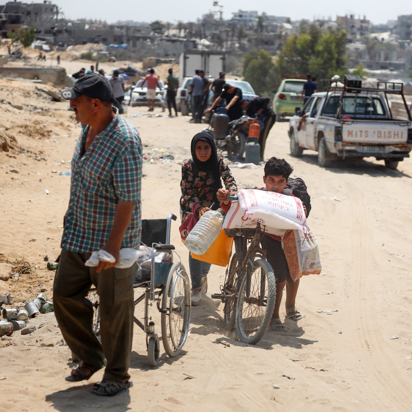 Displaced Palestinians from the eastern part of Khan Yunis, are seen at a temporary camp set up in the grounds of a cemetary in the western part of the city, in the southern Gaza Strip, on July 27, 2024, amid the ongoing conflict between Israel and the Palestinian militant group Hamas. photo by majdi fathi