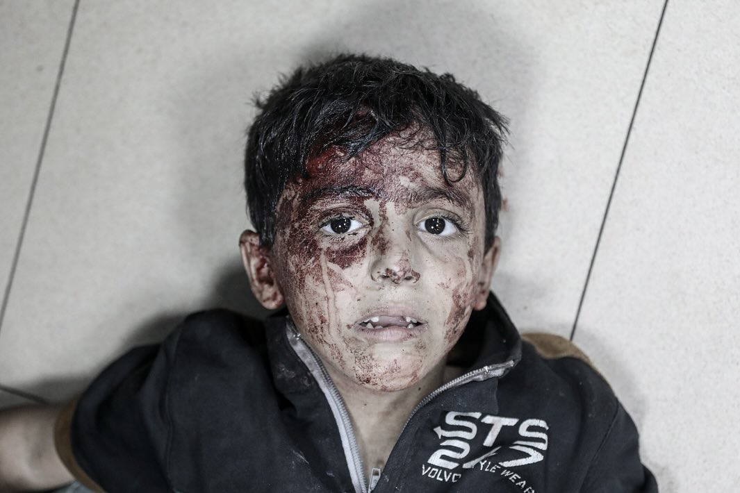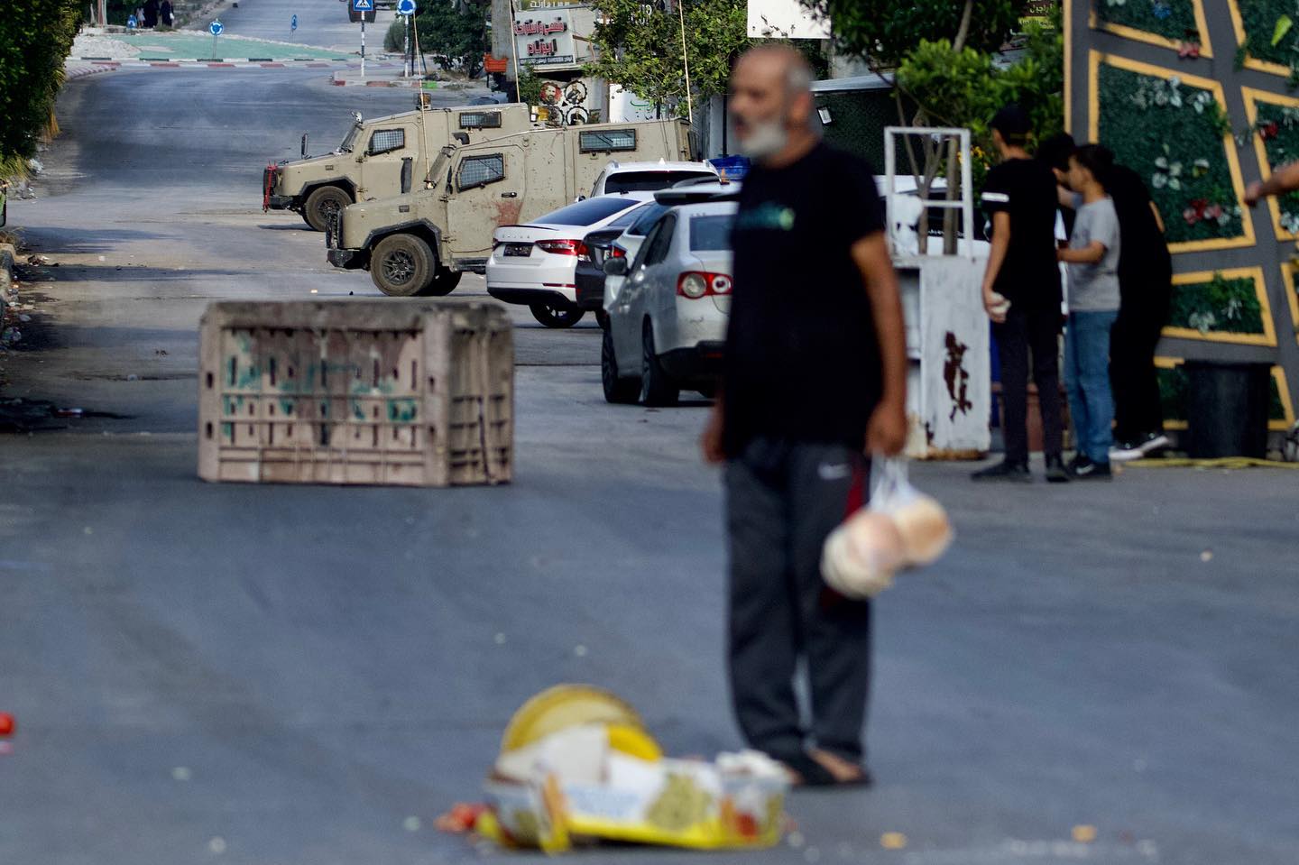 A Palestinian boy walks next to graves as displaced Palestinians from the eastern part of Khan Yunis set up temporary camp in the grounds of a cemetary in the western part of the city, in the southern Gaza Strip, on July 27, 2024, amid the ongoing conflict between Israel and the Palestinian militant group Hamas.