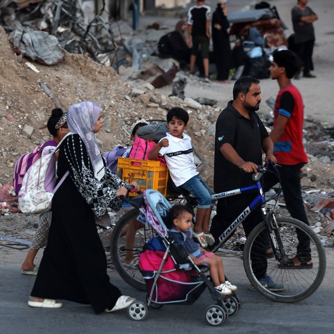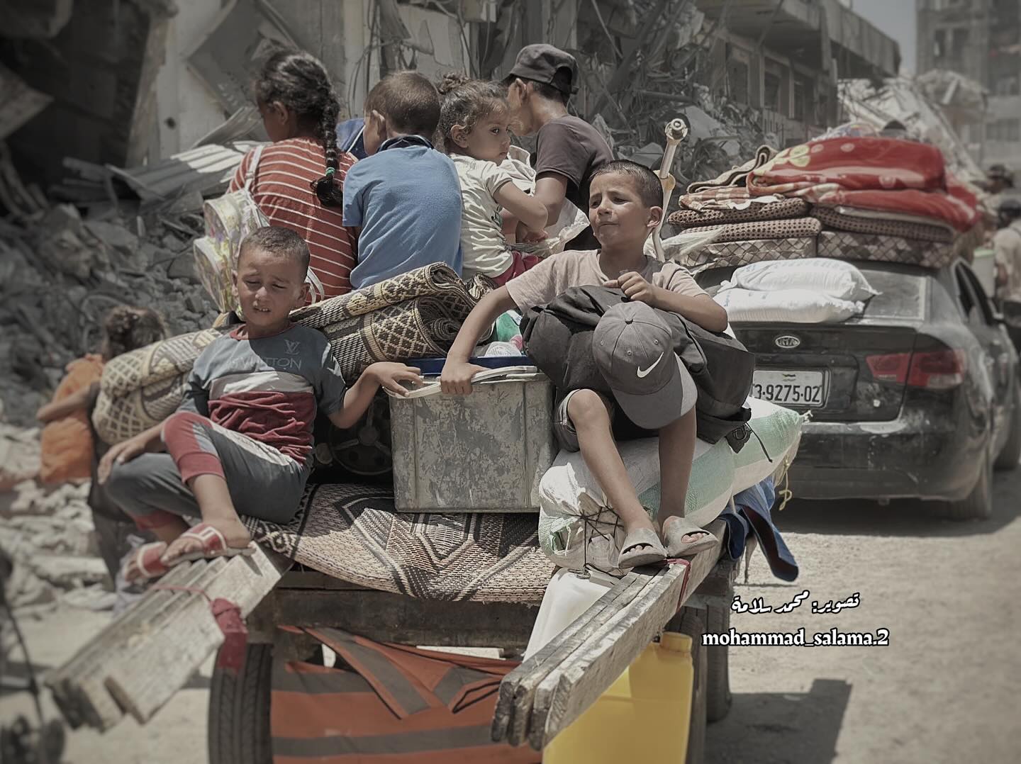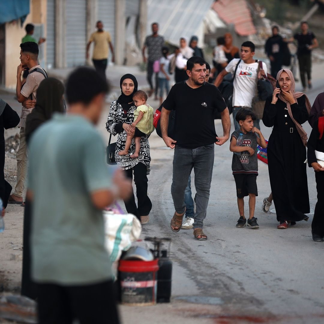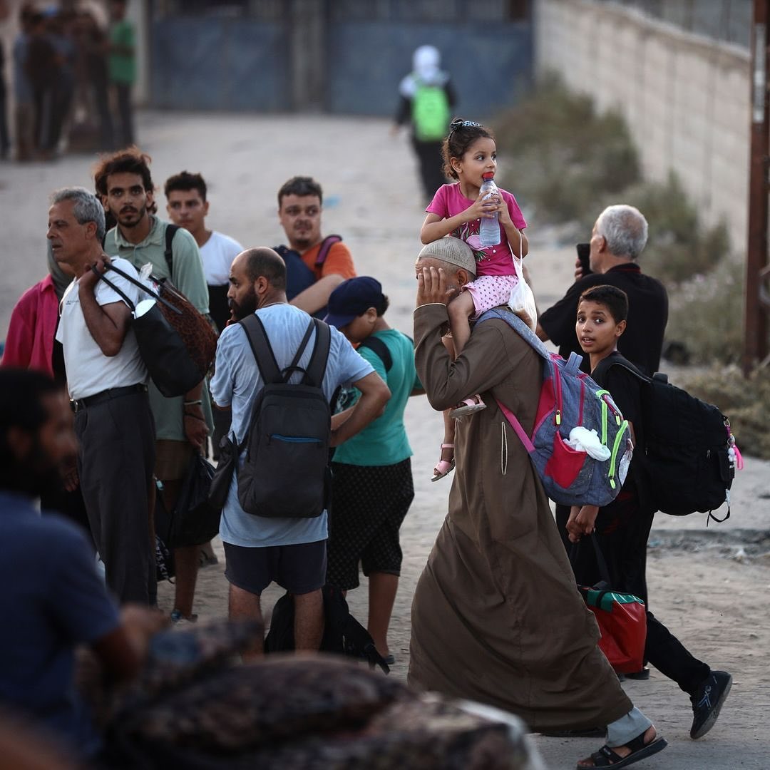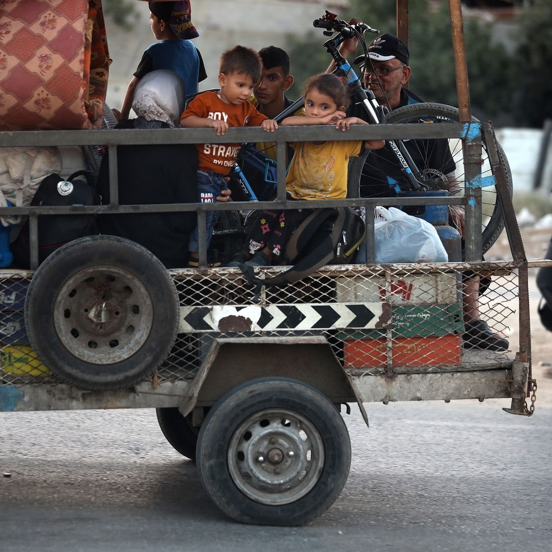Displaced Palestinians flee from the Braij and Nusairat refugee camps following the threats of occupation forces to evacuate the areas. By @salama_nabel نزوح المواطنين من مخيمي النصيرات و البريج بعد تهديدات الاحتلال