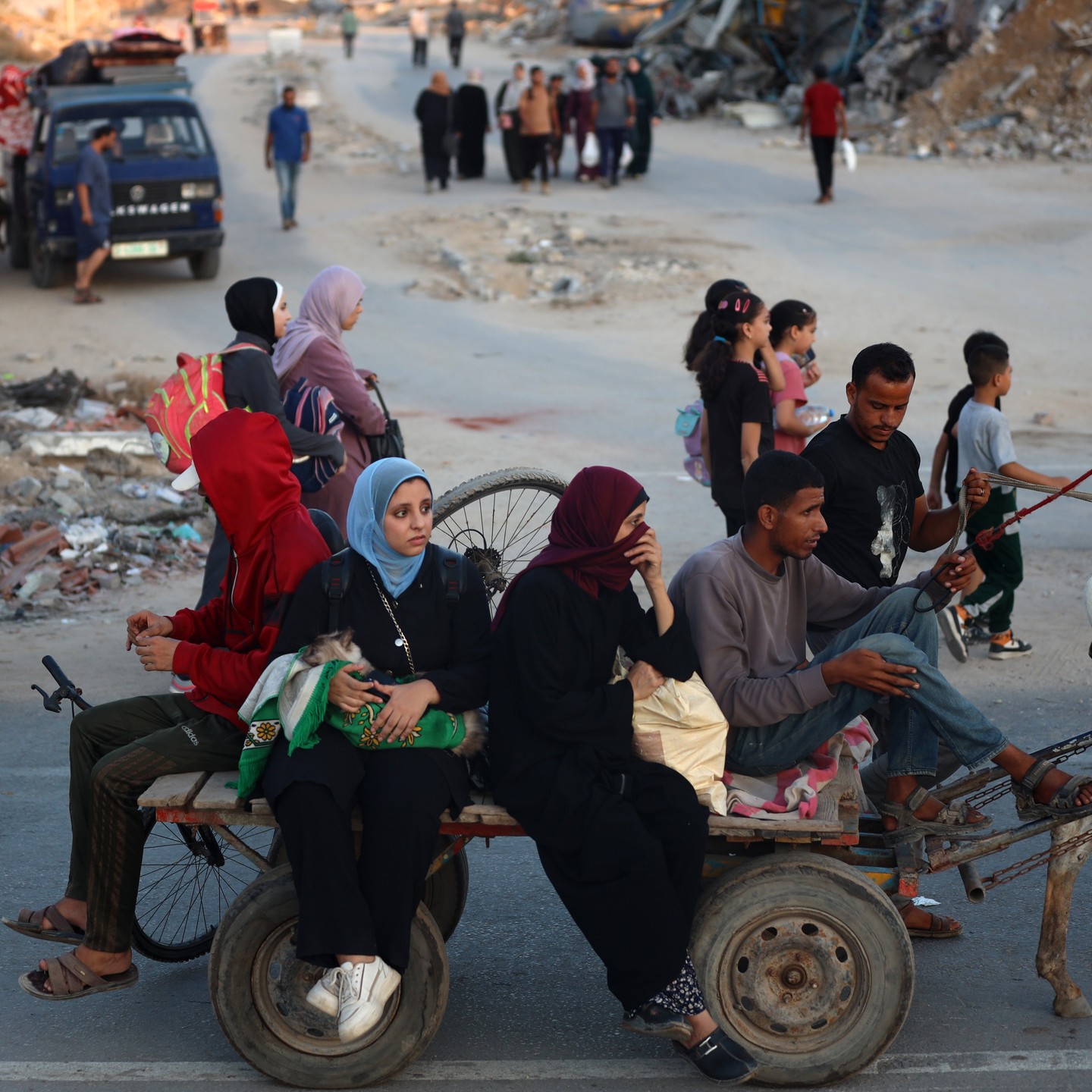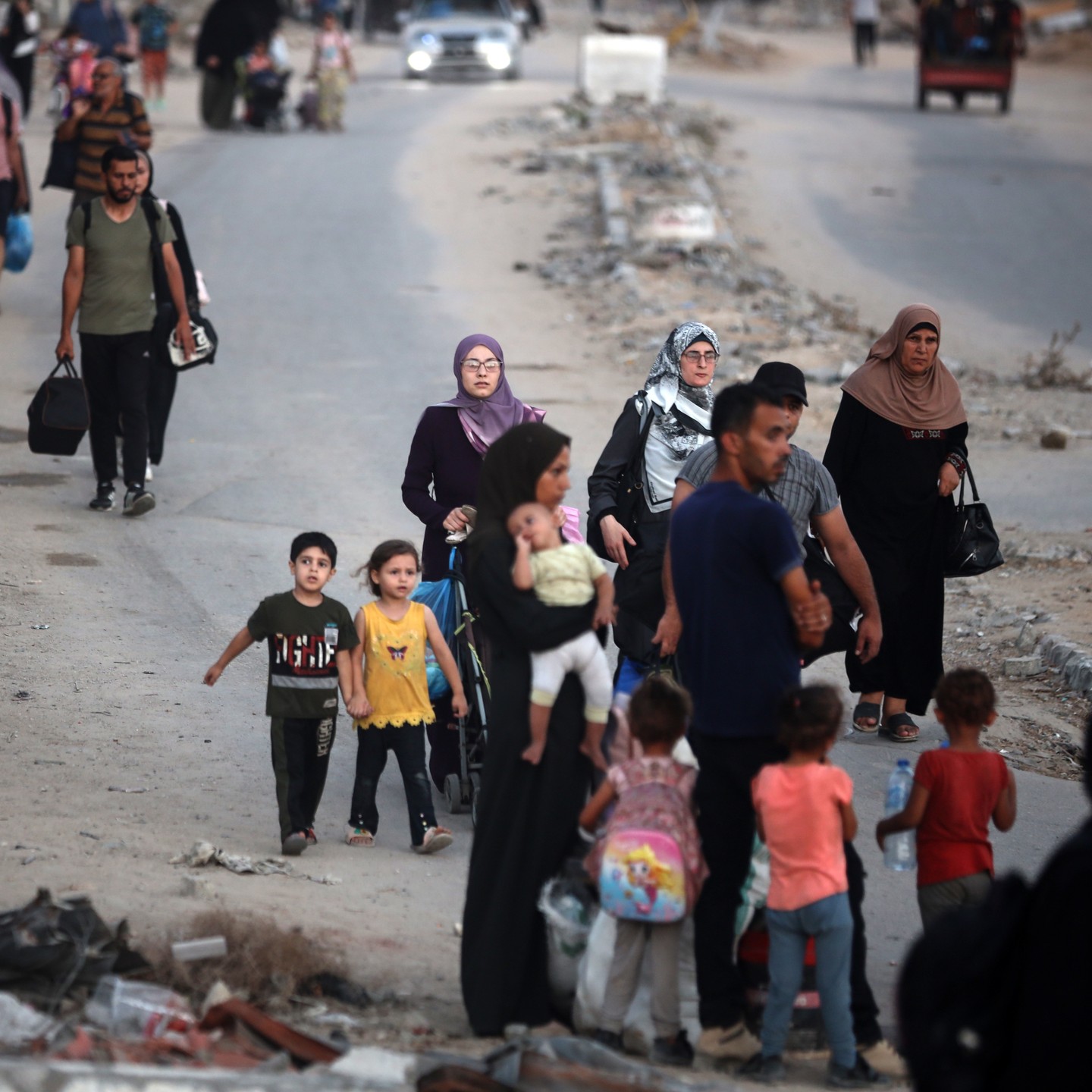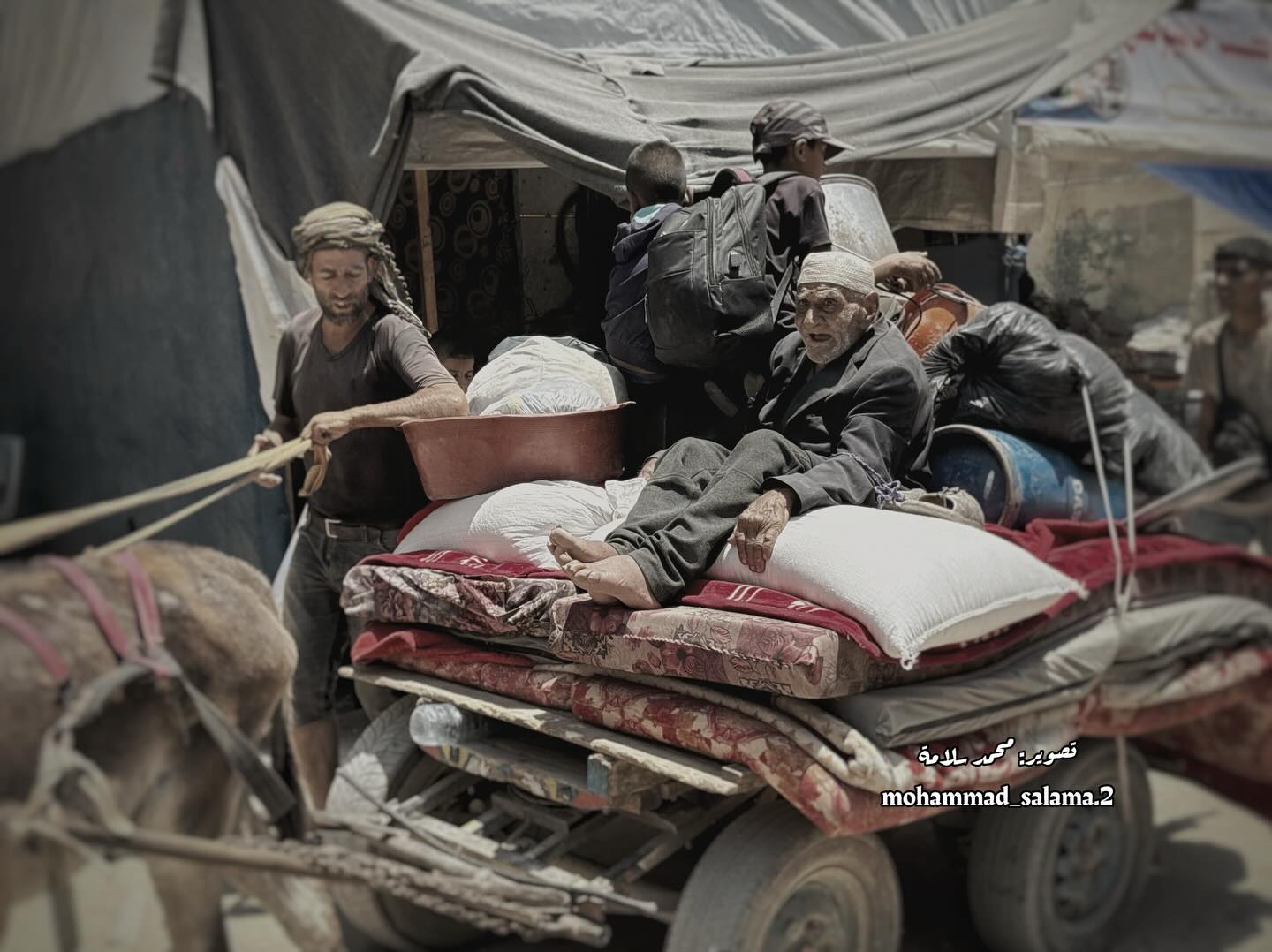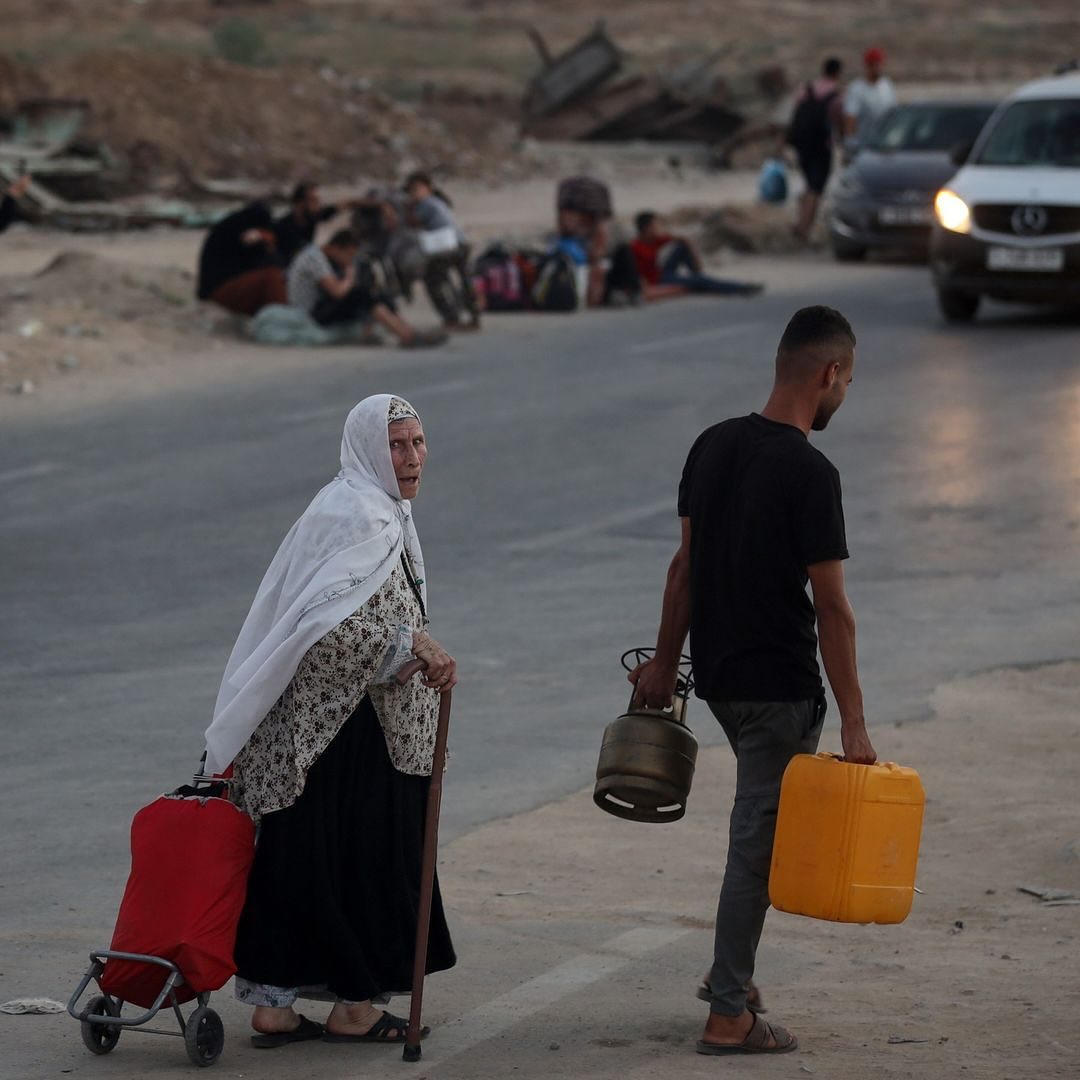 Displaced Palestinians flee from the Braij and Nusairat refugee camps following the threats of occupation forces to evacuate the areas. By @salama_nabel نزوح المواطنين من مخيمي النصيرات و البريج بعد تهديدات الاحتلال
