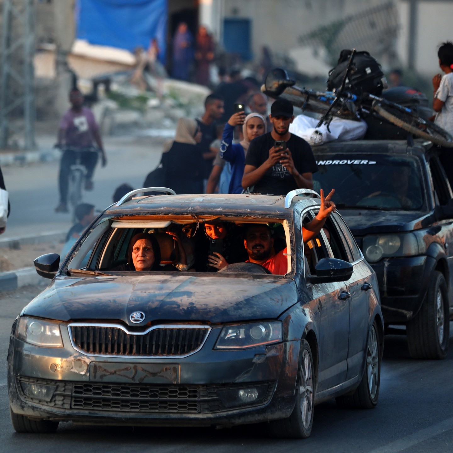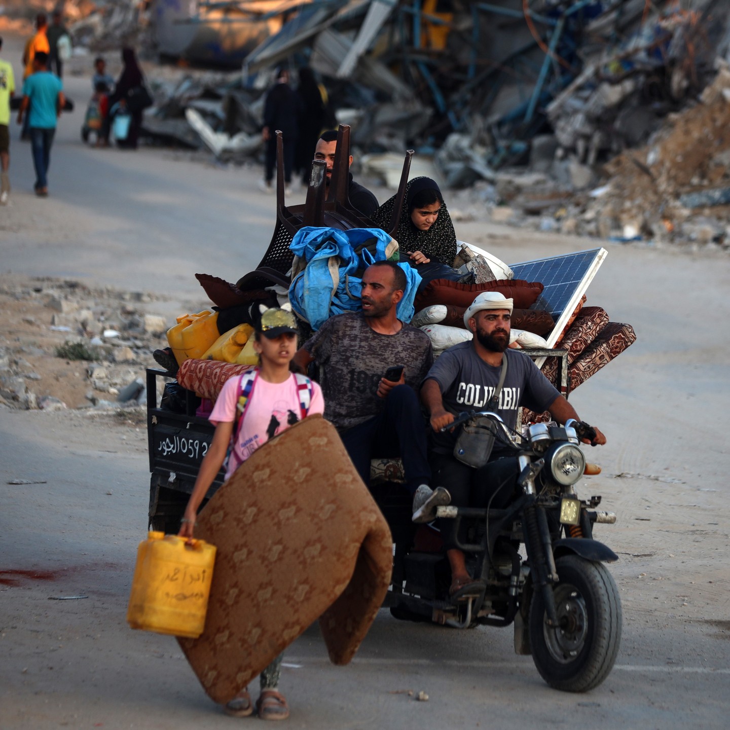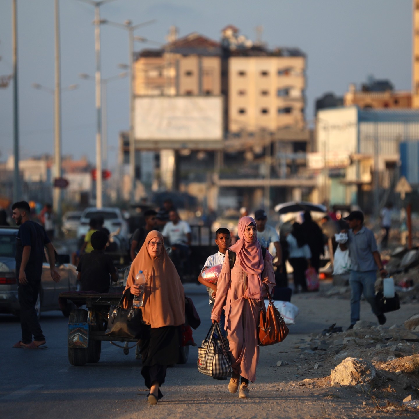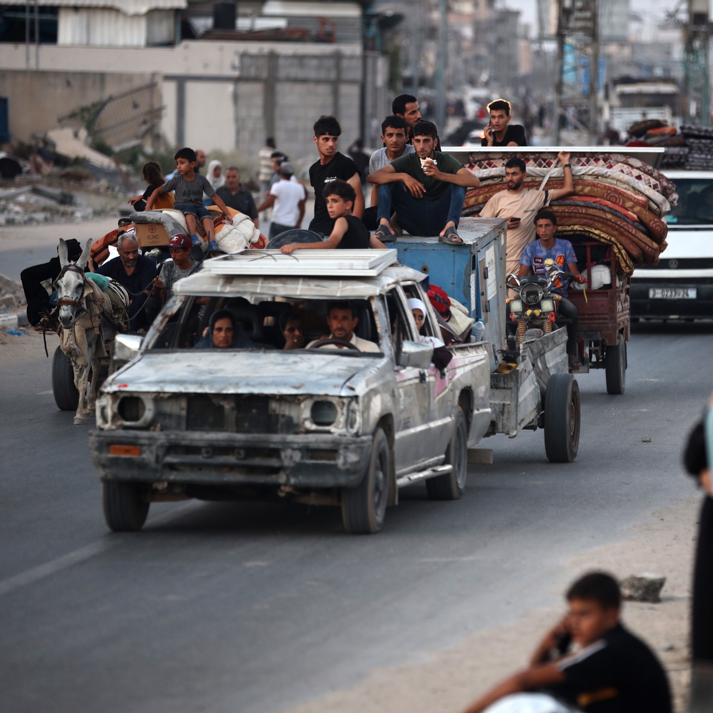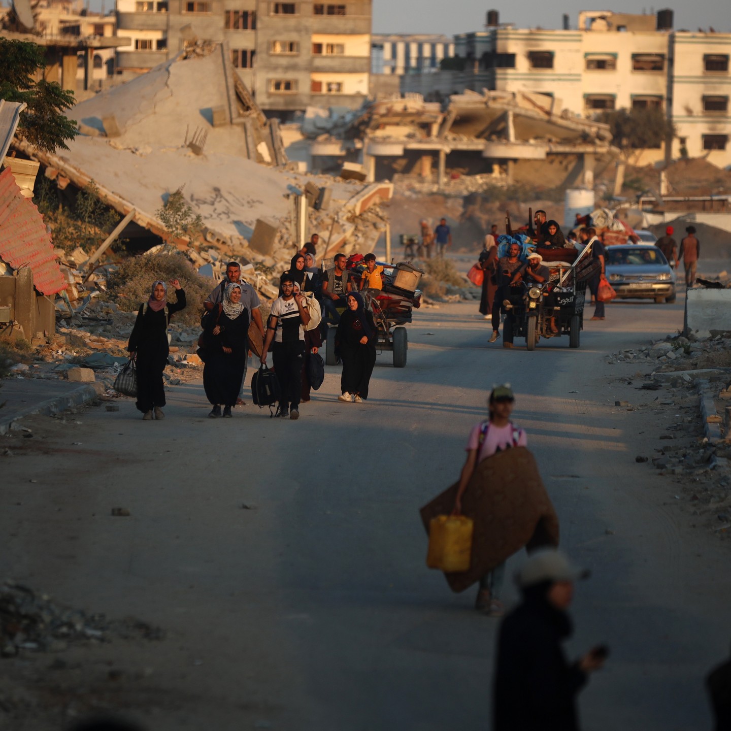 Displaced Palestinians flee from the Braij and Nusairat refugee camps following the threats of occupation forces to evacuate the areas. By @salama_nabel نزوح المواطنين من مخيمي النصيرات و البريج بعد تهديدات الاحتلال