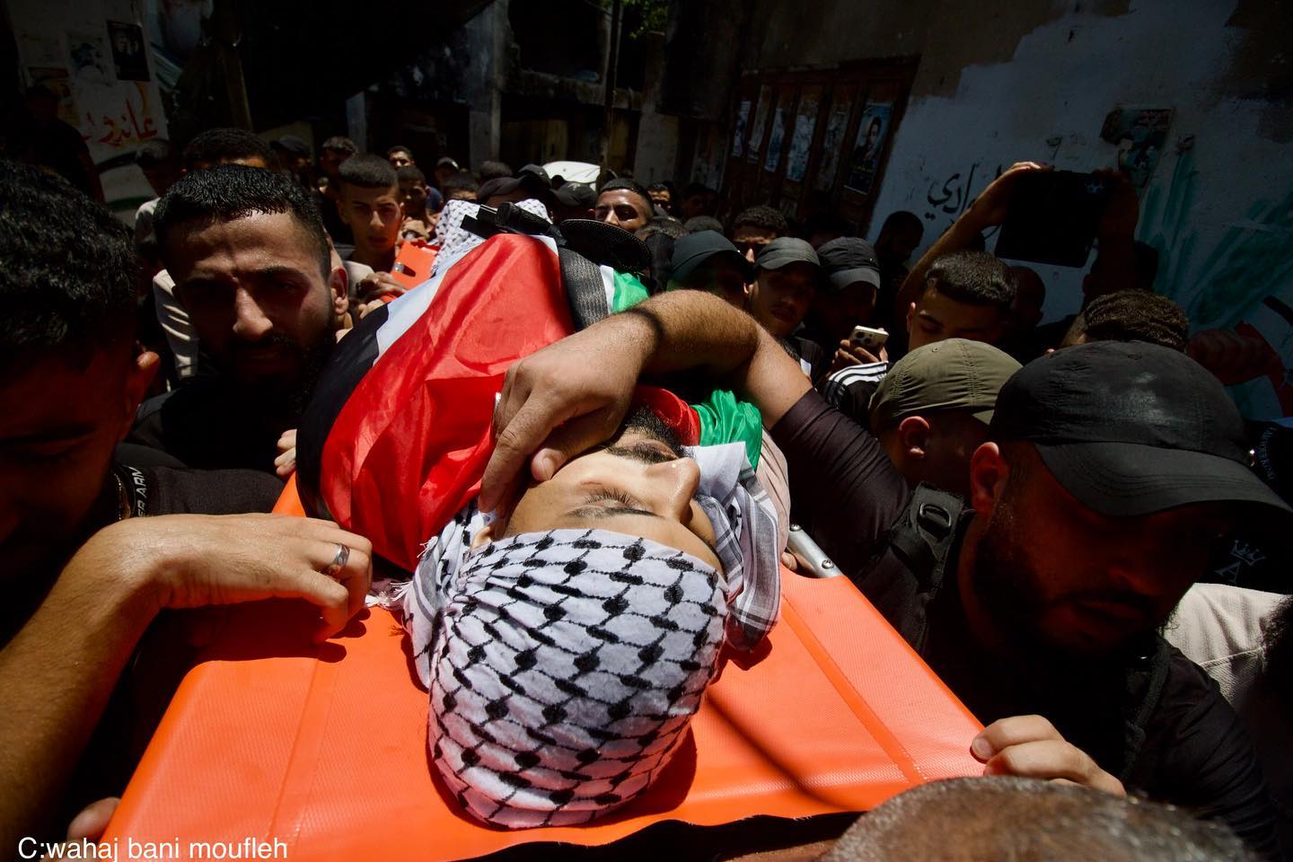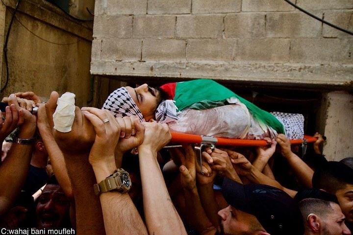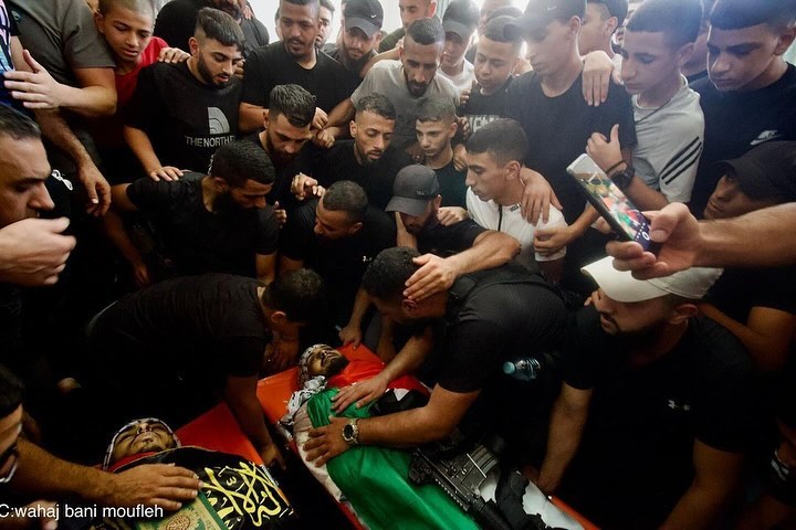 Balata Refugee Camp, Nablus, West Bank - July 28: Palestinians bid farewell to martyrs Louai Mohammed Hashash (17) and Ali Bassam Hashash (24), who were killed in an Israeli airstrike on Balata Refugee Camp yesterday. According to the Palestinian Ministry of Health, the airstrike resulted in at least 35 injuries, including critical cases, and several homes were destroyed during the military operation. By @wahaj_bani_moufleh تشييع جثامين الشهيدين علي حشاش و لؤي حشاش اللذين ارتقيا في قصف على مخيم بلاطة في نابلس