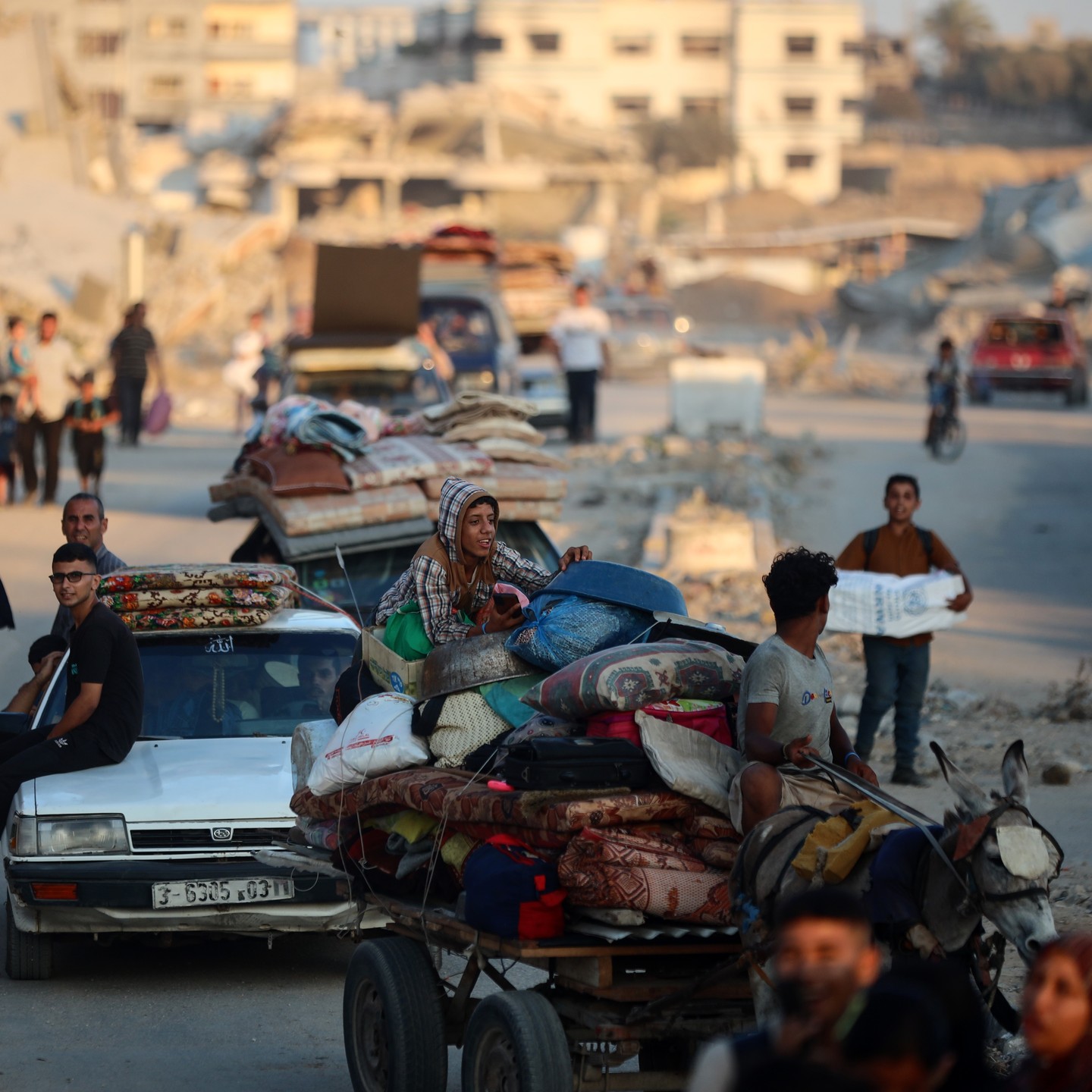 Displaced Palestinians leave al-Bureij refugee camp towards the west, following the threats by the occupation forces, central Gaza Strip on July 28, 2024. By @majdi_fathi