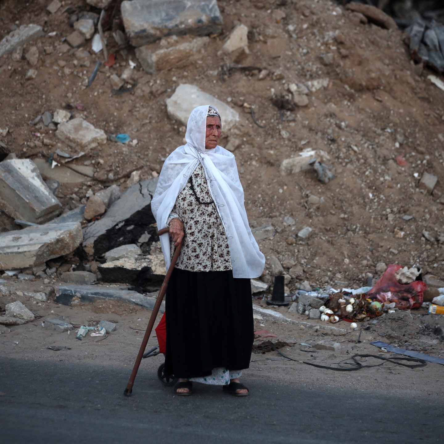 The lady says that she is tired that the Israeli army asked them to move and leave the place, many times this lady was displaced and she does not know which to go now because all places are not safe.