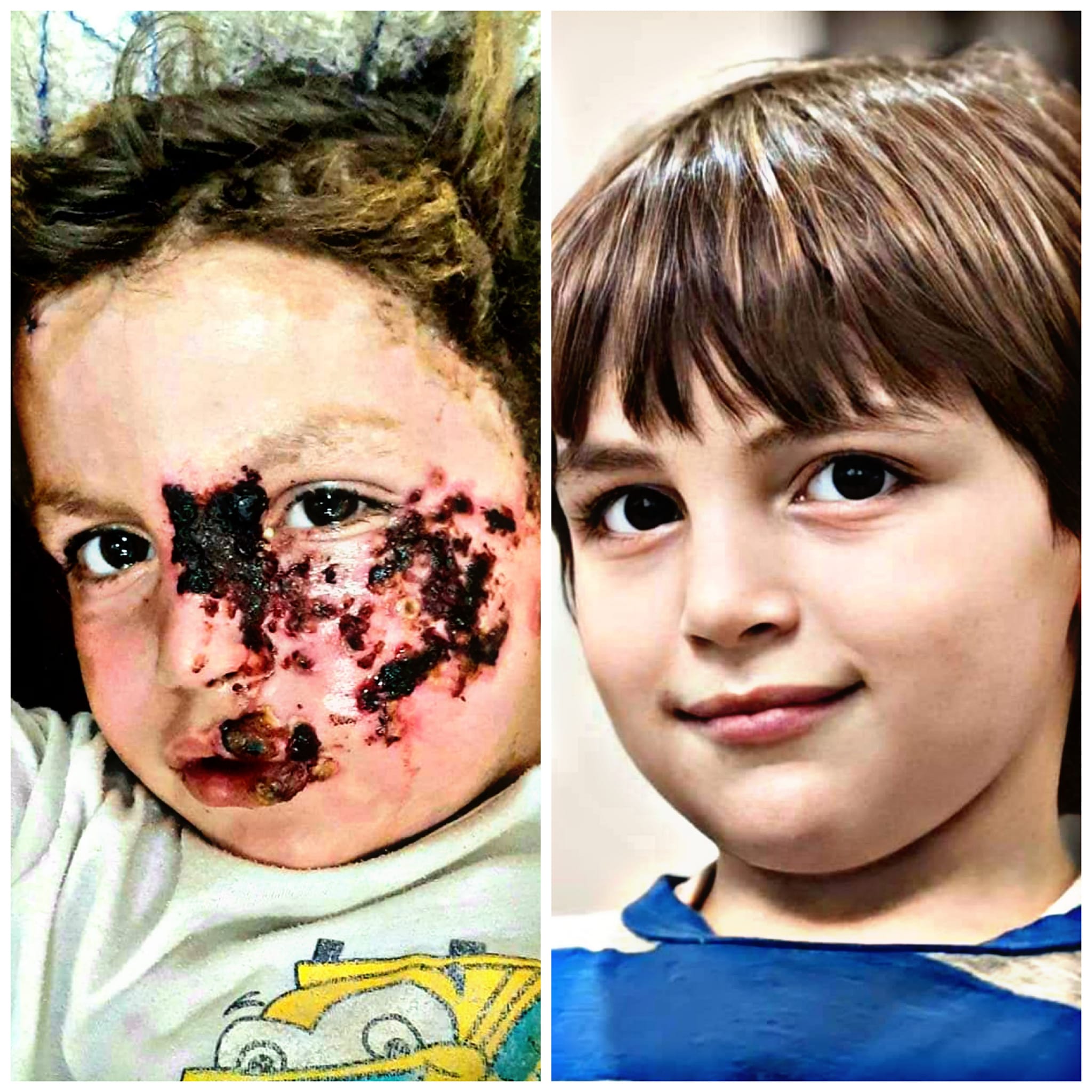 الطفل الجميل حسني حسن الوشاحي، صواريخ الغدر والقتل والإجرام التي تلقيها طائرات الاحتلال، بدلت هذه الملامح الجميلة والبسمة البريئة، وروح الطفولة، بسبب الحروق التي تسببت بها هذه الإبادة الجماعية المستمرة بحق الأطفال في قطاع غزة. The beautiful child, Hosni Hassan Al-Washahi, the treacherous, murderous and criminal missiles dropped by the occupation aircraft, changed these beautiful features, innocent smile and childhood spirit, due to the burns caused by this ongoing genocide against children in the Gaza Strip.