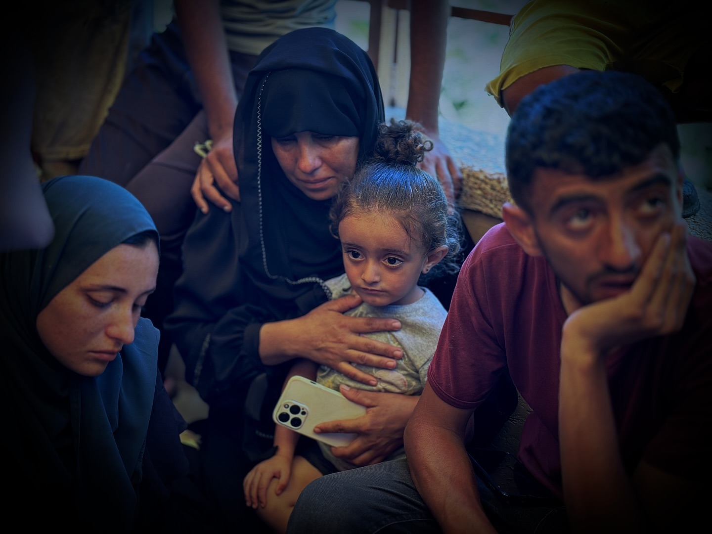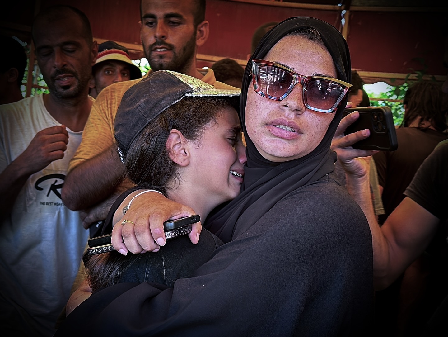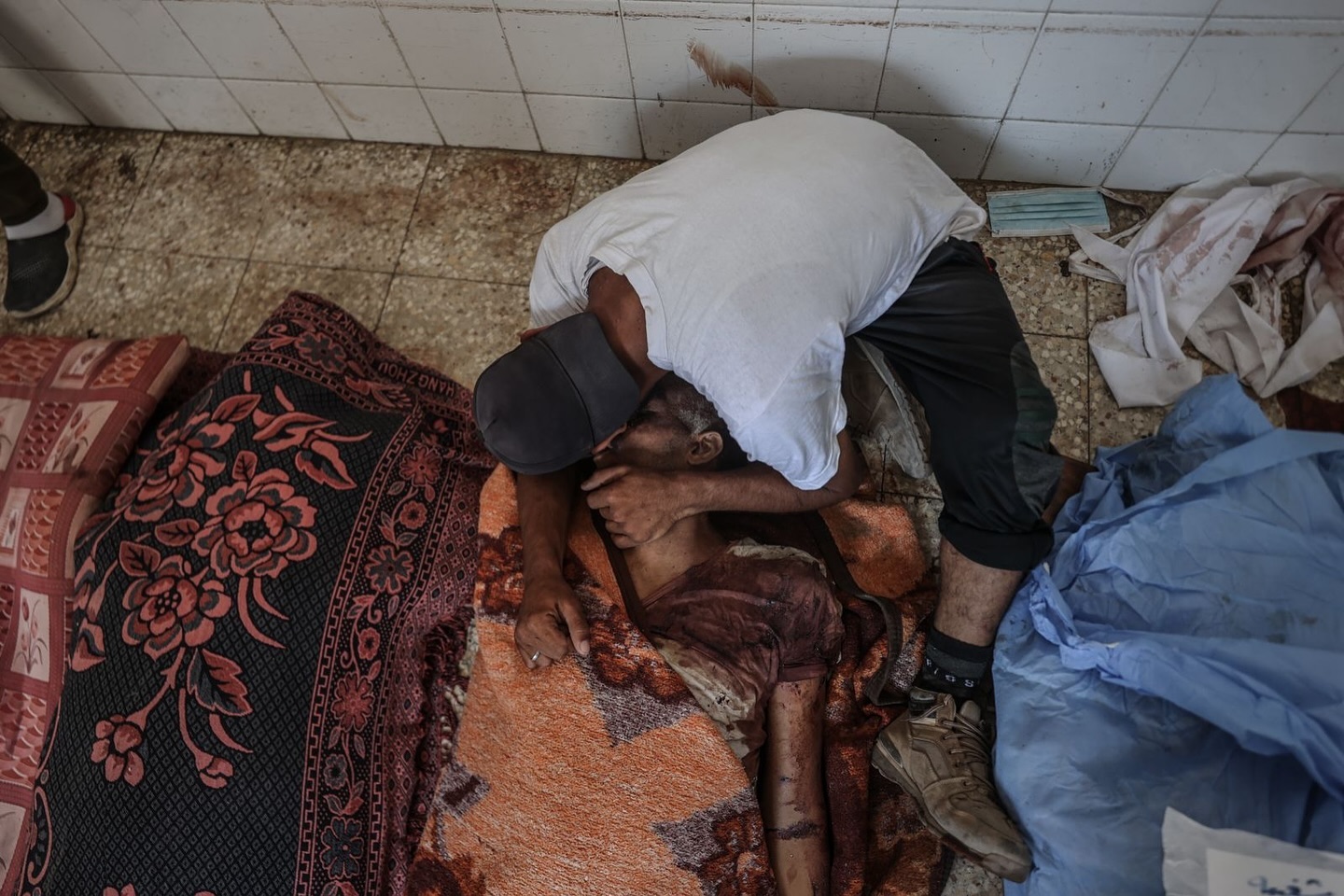 A view from al-Aqsa Martyrs Hospital as relatives of those who lost their lives are being mourned, in Deir al-Balah, Gaza. The bodies of Palestinians who were killed as a result of the Israeli army’s attacks on the central part of Gaza were brought to al-Aqsa Martyrs Hospital in the city. (Photo by Ali Jadallah/Anadolu via Getty Images)