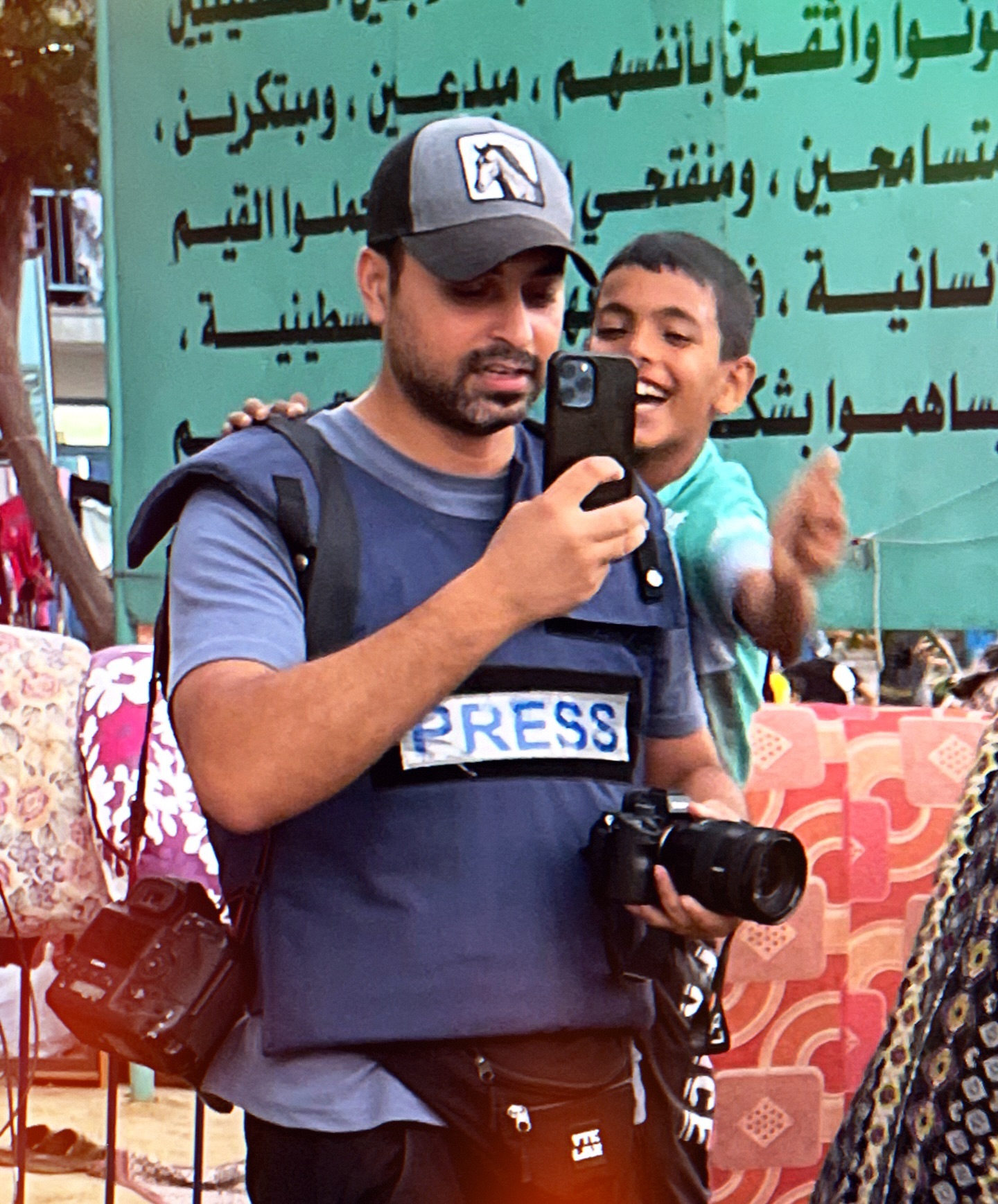من وداع الحبيب زميلنا محمد يعمل محامي ويعمل في مجال الصحافة ولم يترك الميدان منذ بداية الحرب عمل مع عدة وكالات ومصور حر متعاون مع قنوات اخبارية عربية وخلال اقتحام خانيونس كان يغطي الاحداث من منطقة دوار ابو حميد ويتابع كل لحظة الاحداث هناك