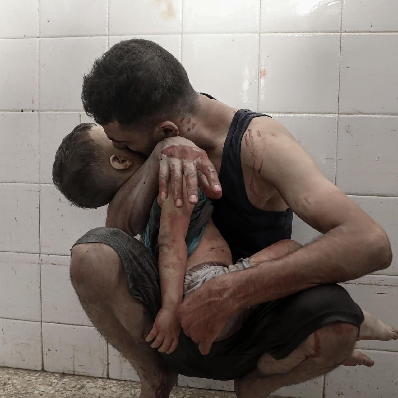 A child carries his father’s injured leg in Gaza. By @ismail_alzanoon
