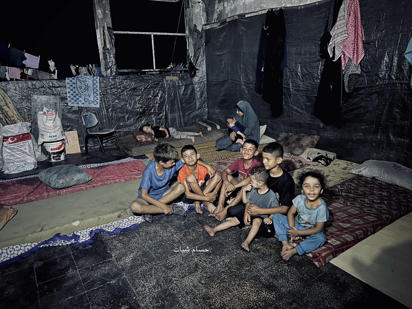 تعيش تلك الام مع أطفالها بين القماش الممزق و جدران محترقة ترعى 10 أطفال أيتام قتل جيش الاحتلال والدهم في ذلك العدوان يعيشون ظروف صعبة في ظل مجاعة وانعدام مقومات الحياة