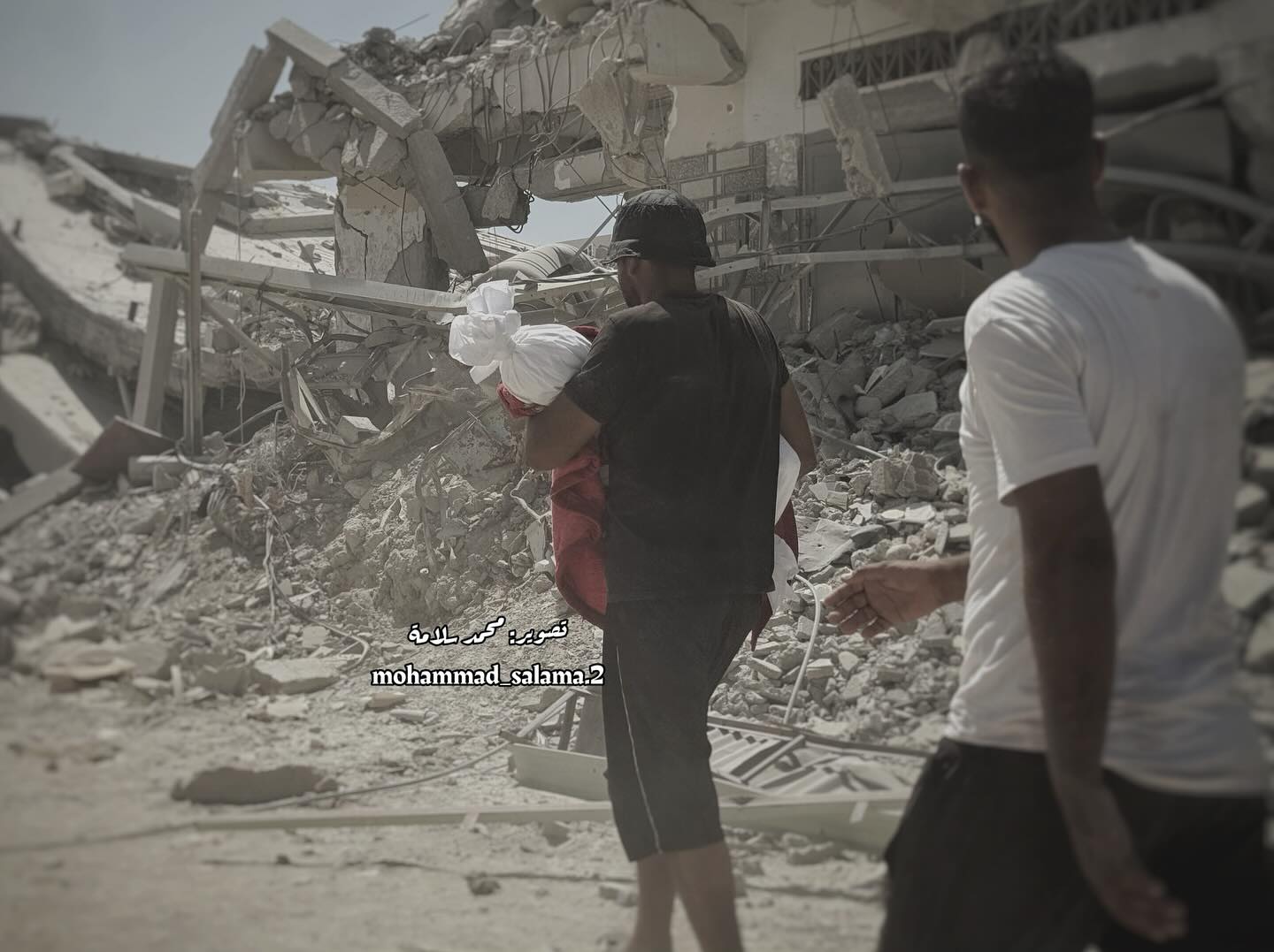 قوات الاحتلال استهدفت قبل قليل منزل شقيقتي، الحمد لله على سلامتها وسلامة أبنائها من هذا القصف المباشر الذي طال المنزل حيث كانت تتواجد هي وأبناؤها وعدد كبير من أقاربنا من عائلة البلعاوي. مع الأسف استشهد في هذا الاستهداف محمد البلعاوي وزوجته وأولاده.