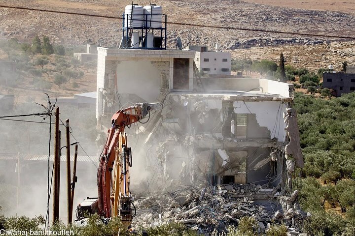The Israeli occupation forces demolished the house of Mamoun Dawabsha in the village of Duma under the pretext of building without a permit. Since October 7, Israeli forces have demolished 153 homes and civilian structures. By @wahaj_bani_moufleh قوات الاحتلال تهدم منزل في قرية دوما جنوب نابلس بحجة البناء من غير ترخيص