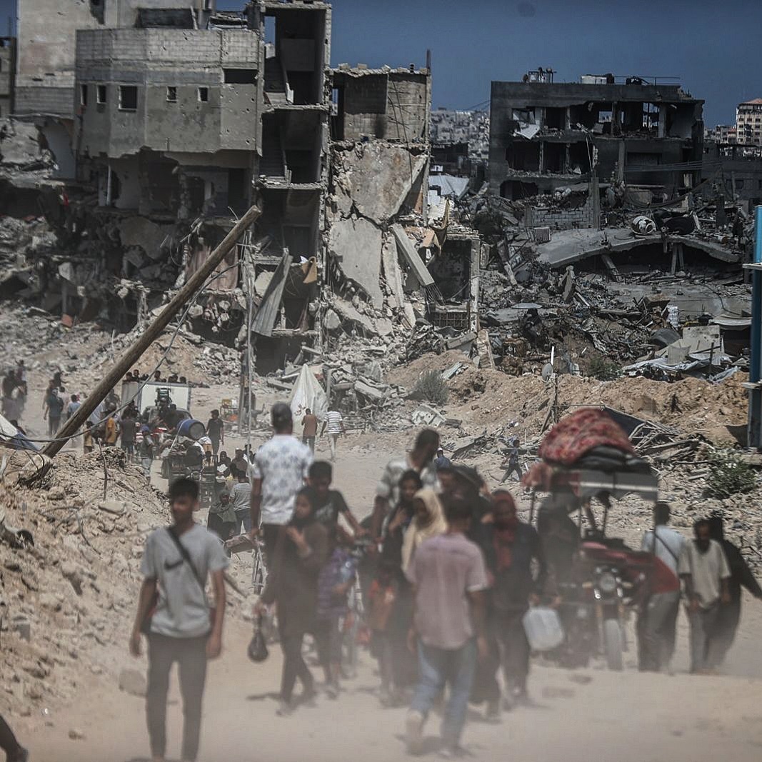 عودة المواطنين إلى منازلهم بعد نزوحهم القسري بسبب توغل الاحتلال شرق خانيونس Citizens return to their homes after their forced displacement due to the occupation incursion east of Khan Yunis