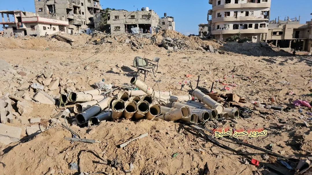صور كميات كبيرة من المخلفات العسكرية تركها الاحتلال خلفه عقب الانسحاب من شرق محافظة خانيونس