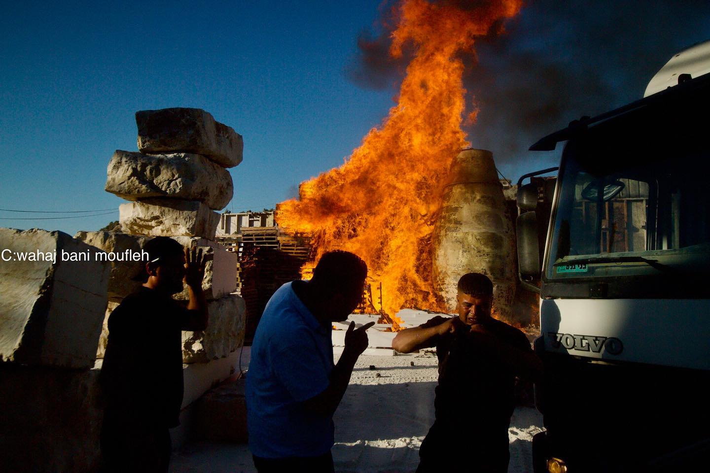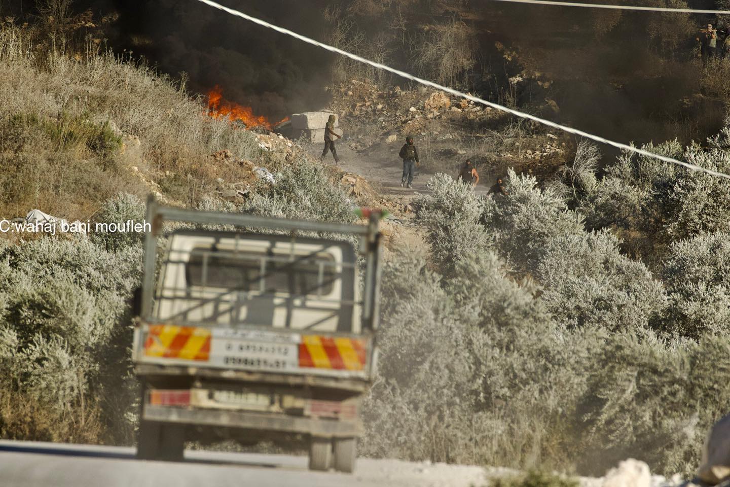 Settlers, protected by occupation forces, attack the industrial area in the town of Beita and set one of the properties on fire.