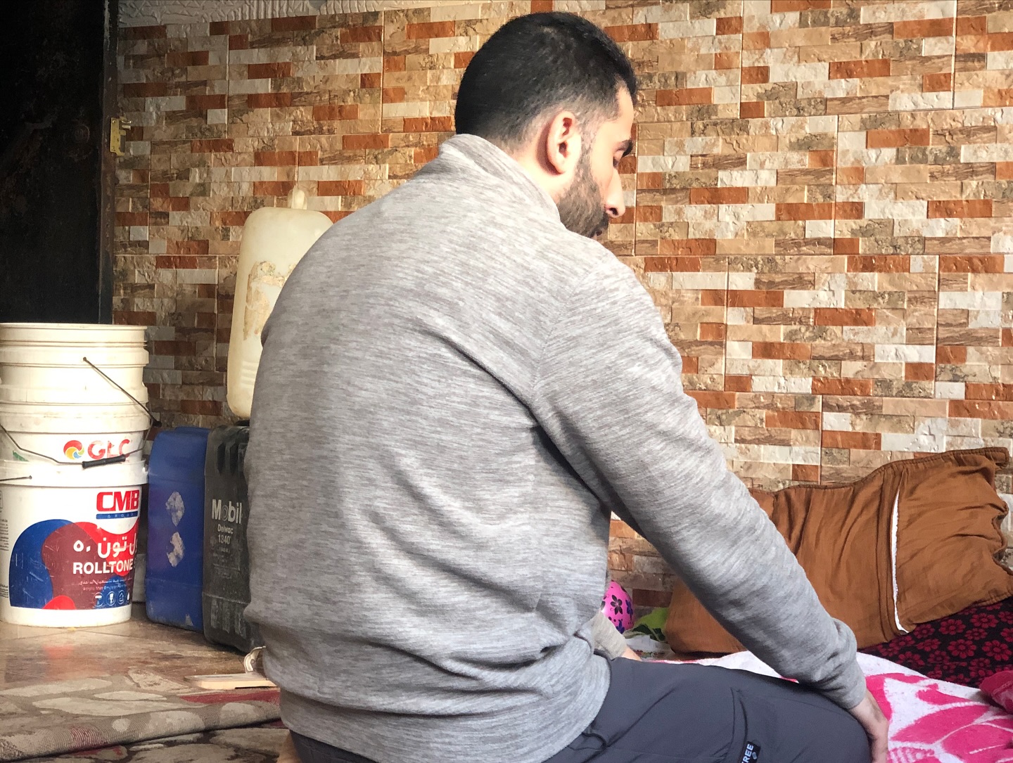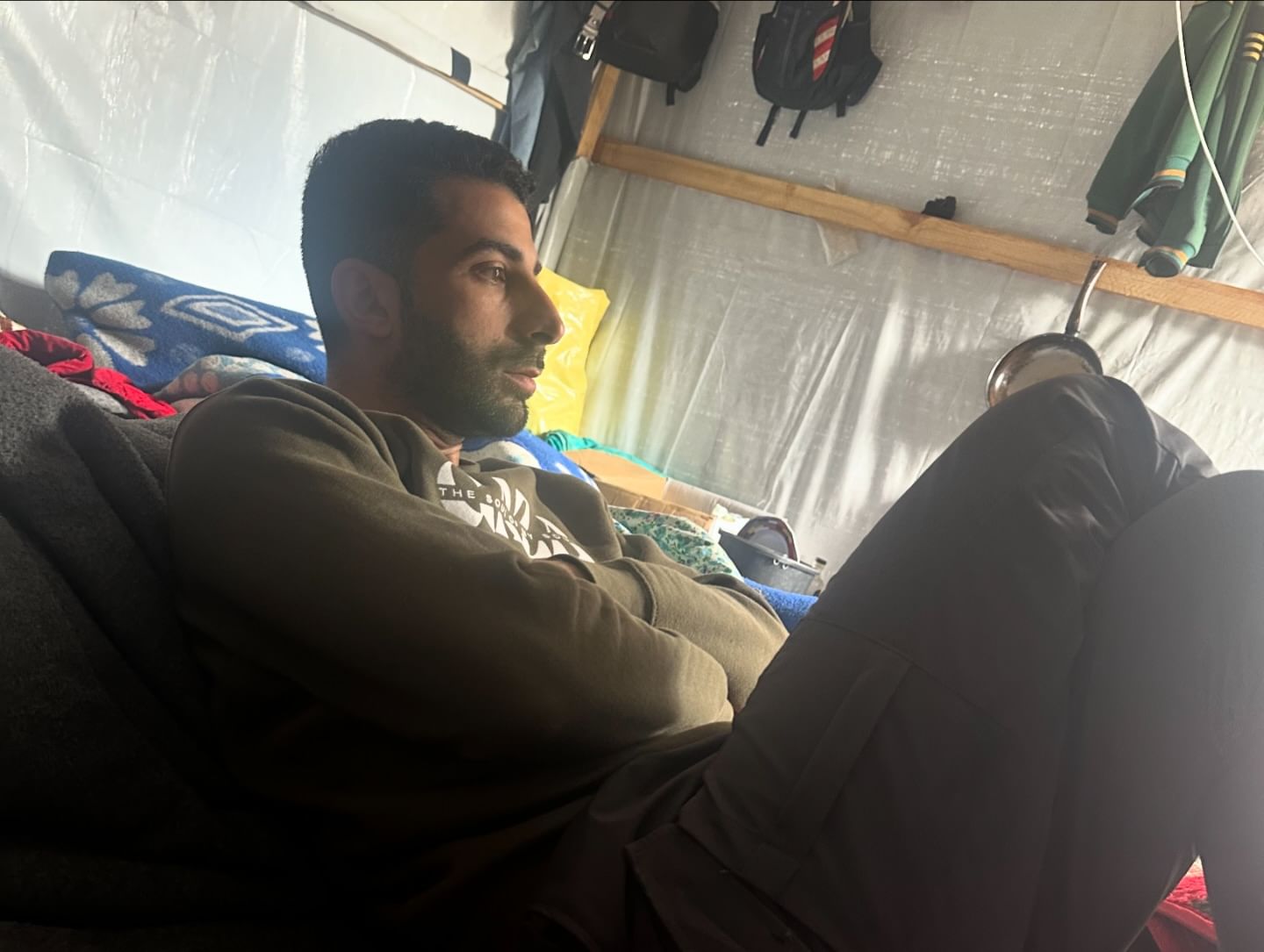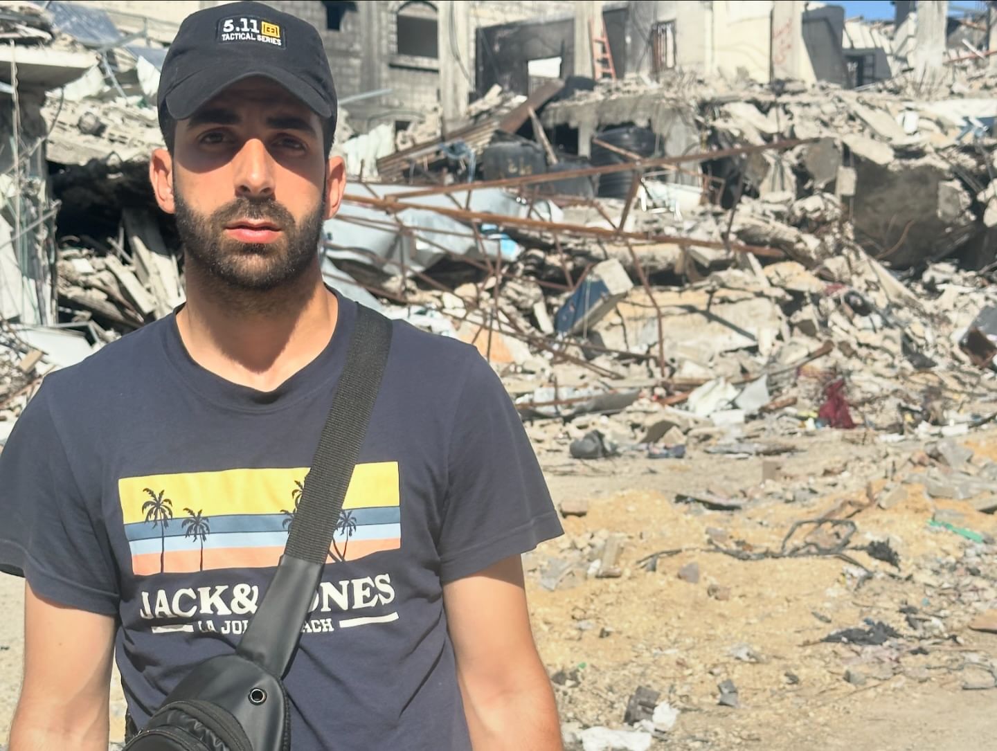 المواطن هيما بربخ يوجه رسالة للعالم بعد مرور 300 يوماً على الحرب ضد قطاع غزة، عقب استشهاد أفراد من أقاربه، اليوم.