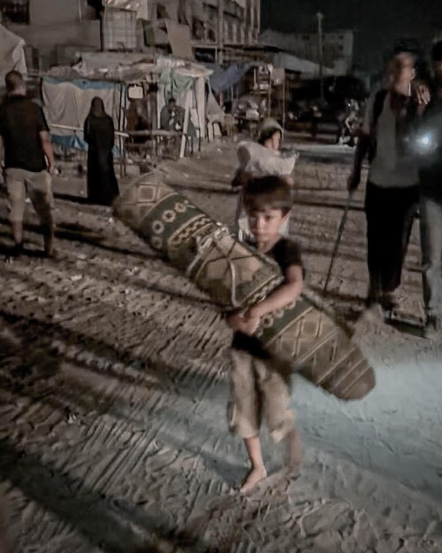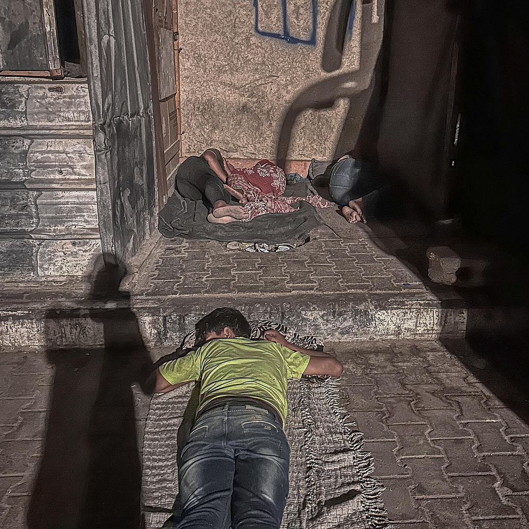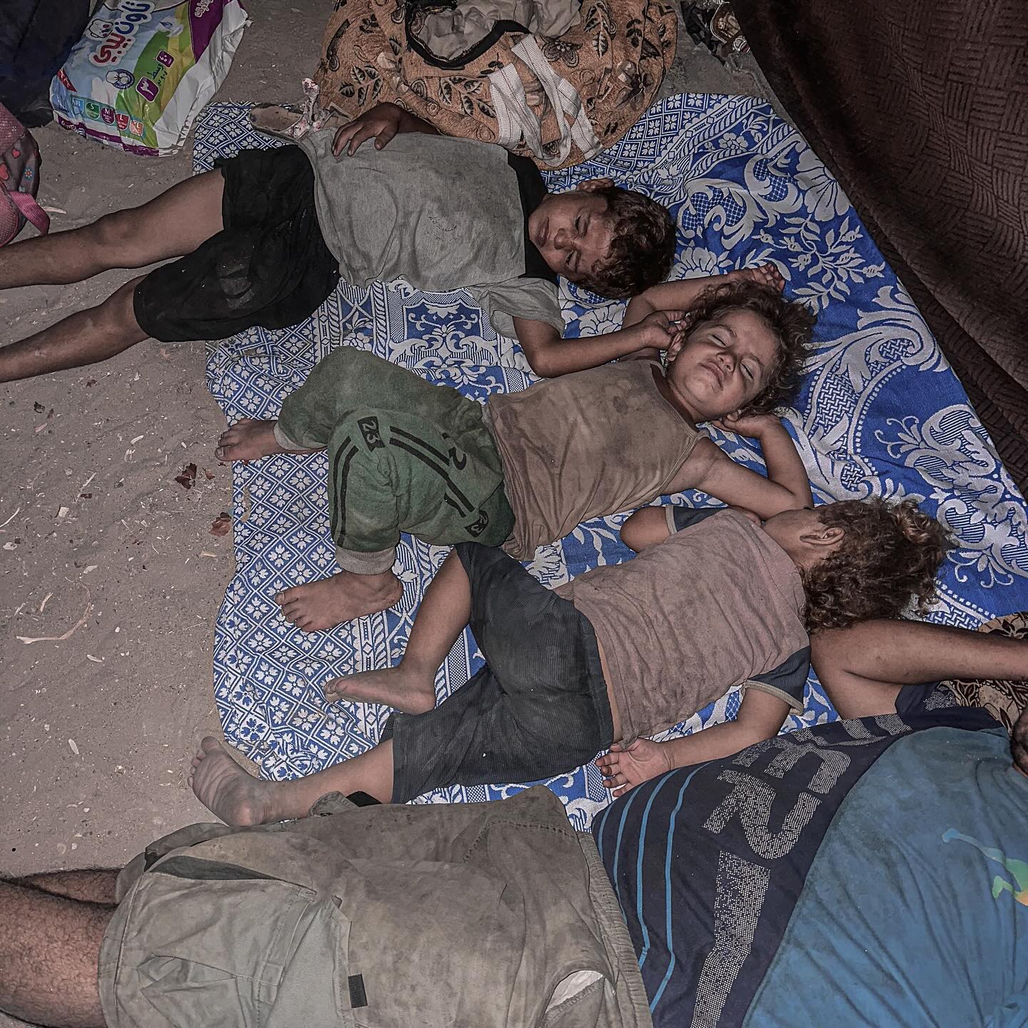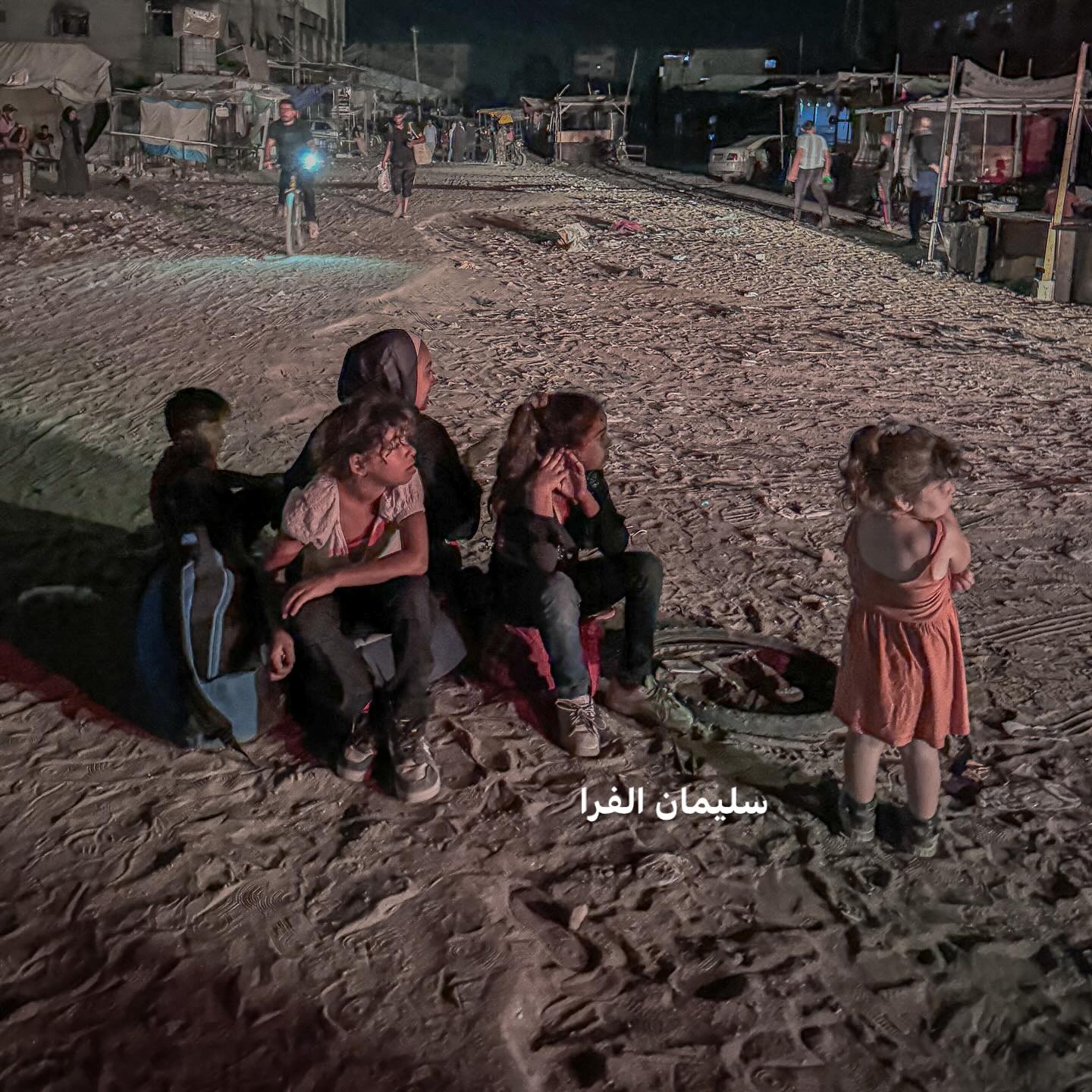 Palestinian children sleep in the streets with families who were forcibly displaced from areas in Khan Younis following the threats of occupation forces. By @soliman__farra أطفال ينامون في الطرقات مع عائلاتهم بعد ان اجبرهم الاحتلال على النزوح من مناطق في خانيونس
