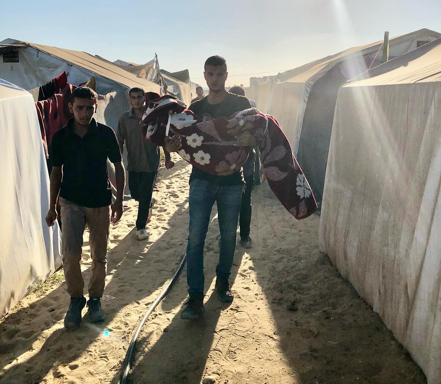 Displaced Palestinians sleep in the streets after they were forcibly displaced from their shelters in Khan Younis. By @hani.alshaer