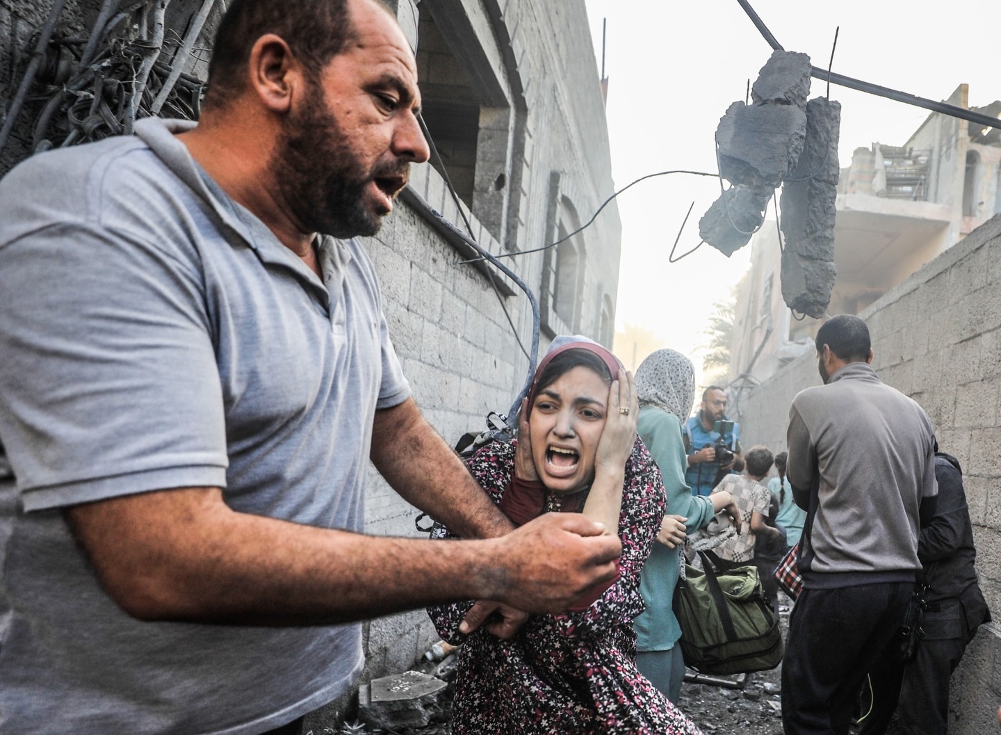 A woman screams and calls for help after their home was bombed and some of her children went missing inside the house in the central Gaza Strip. Photo: Yasser Qudih سيدة تصرخ وتستنجد بعد قصف منزلهم وفقدان بعض اطفالها داخل المنزل وسط قطاع غزة تصوير/ياسر قديح