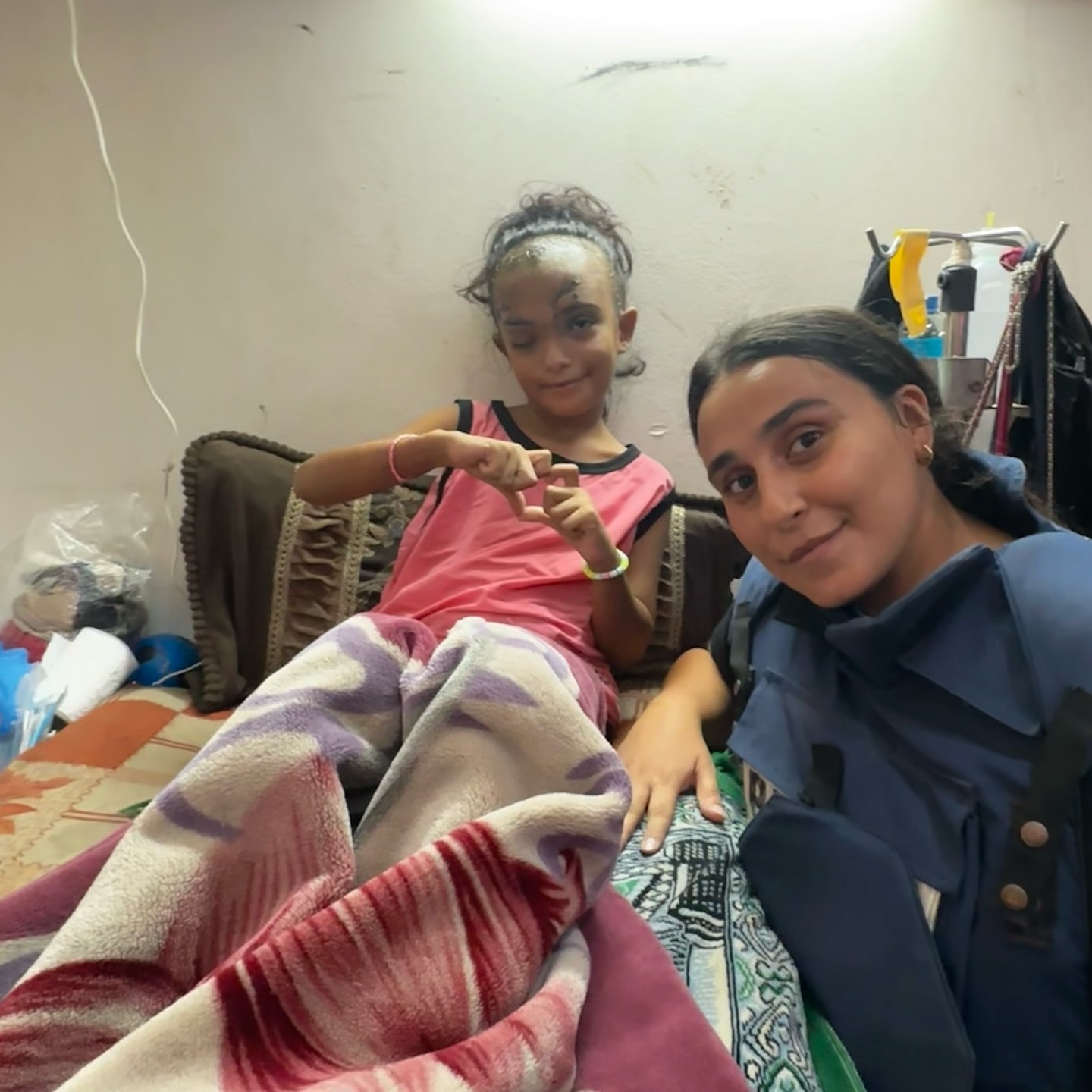 Guess who I got to meet today🤍 Sila’s name is as beautiful as her smile, which somehow remains bright despite the pain she’s enduring. Only 7 years old, Sila was injured in an airstrike that hit Khadija School in Deir el Balah. Khadija’s school was a shelter for thousands of families displaced in Deir El Balah. Her injuries are severe—a fractured skull, a torn retina, and distorted vision—but her spirit remains unbroken. Sila is staying in the hospital with 10 other patients in one room. Sila dreams of seeing her father, who is still stuck in the north, and of getting the treatment she desperately needs outside Gaza. I told her that she is going to grow up and she is going to be a strong lady. I told her that she is so beautiful and everyone loves her and cares about her! Sila needs your voice, share her story so we can pressure she can receive her medical treatment abroad!