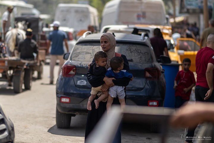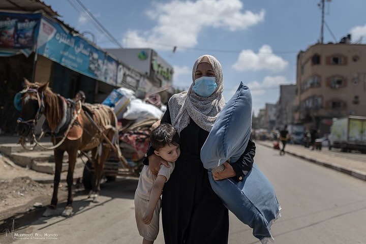 Palestinian mothers carrying their children whilst fleeing from Israeli bombardment in Gaza. By @mahmoudhamda امهات يحملن اطفالهن خلال النزوح في غزة