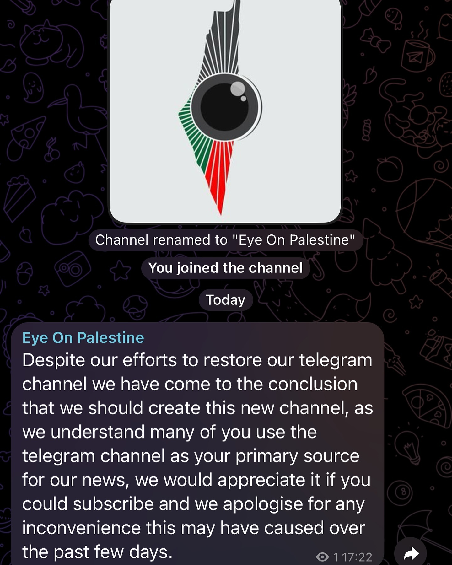 We’re back! https://t.me/Eyeonpalestine2 the link is also available in our bio.