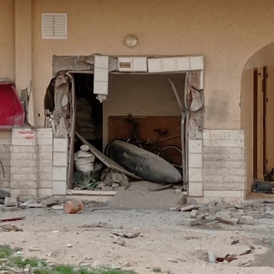 A huge unexploded bomb dropped by Israeli warplanes on the homes of Palestinians in Gaza. قنبلة اسرائيلية لم تنفجر ألقتها طائرات الاحتلال على منازل المواطنين في غزة