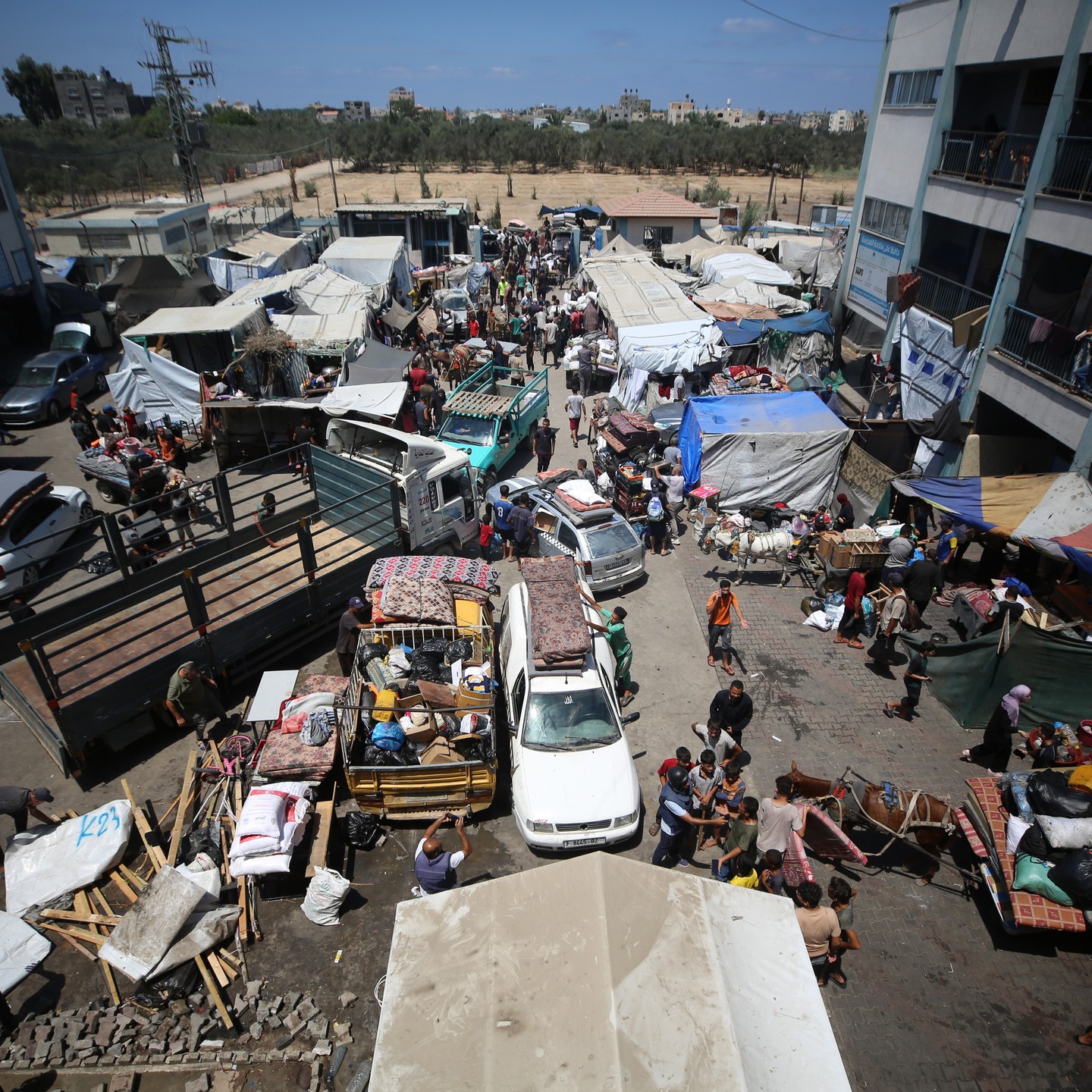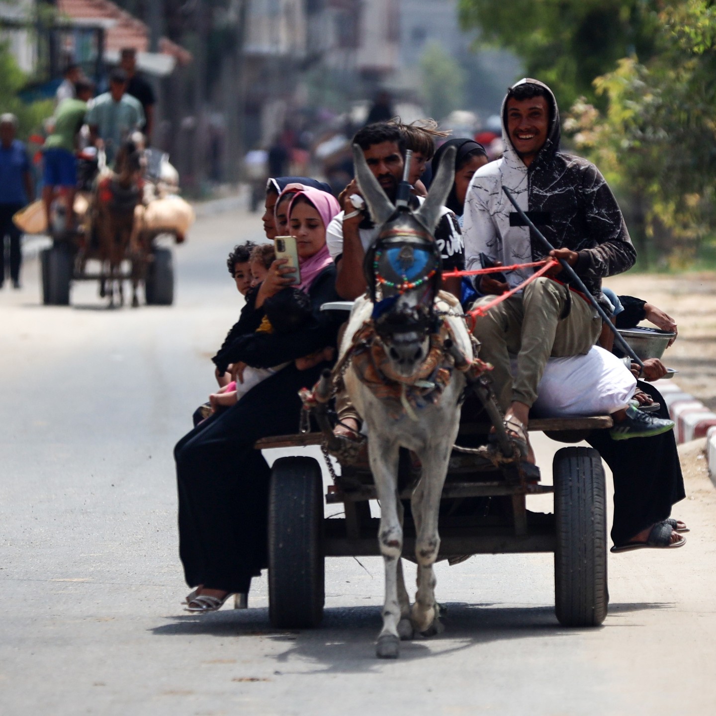 Palestinians are fleeing with their belongings in Deir el-Balah, in the central Gaza Strip, on August 16, 2024, photo by majdi fathi