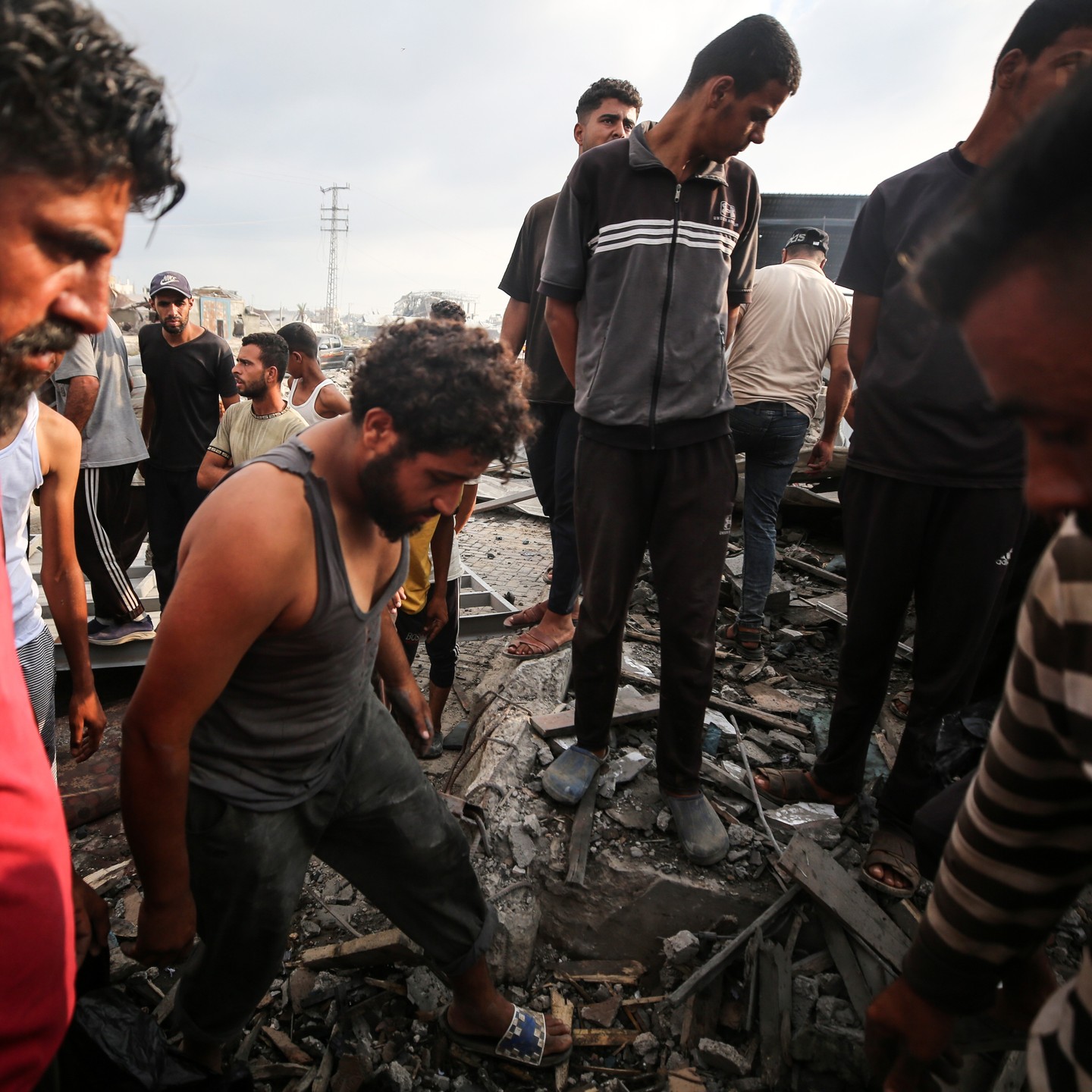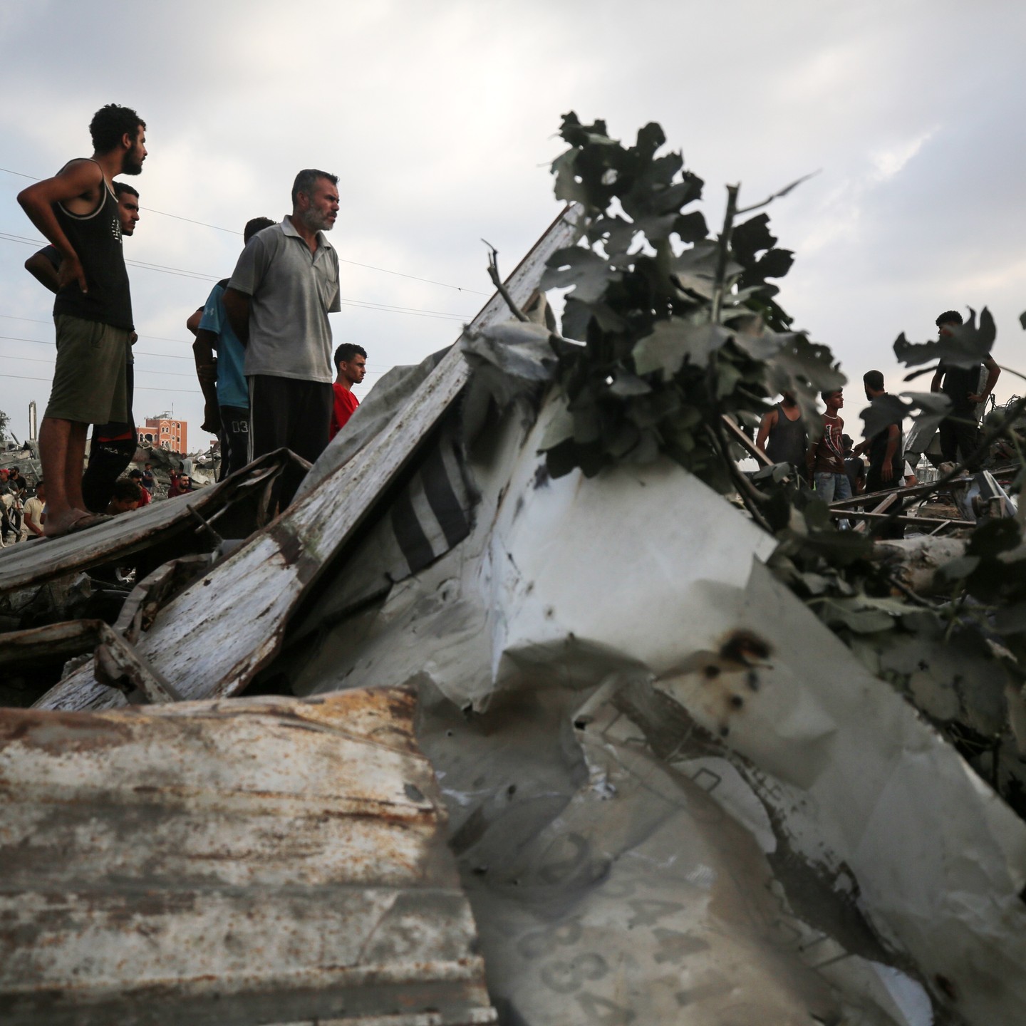 Palestinians inspect the site of an Israeli strike in al-Zawayda in the central Gaza Strip on August 17, 2024, photo by majdi fathi