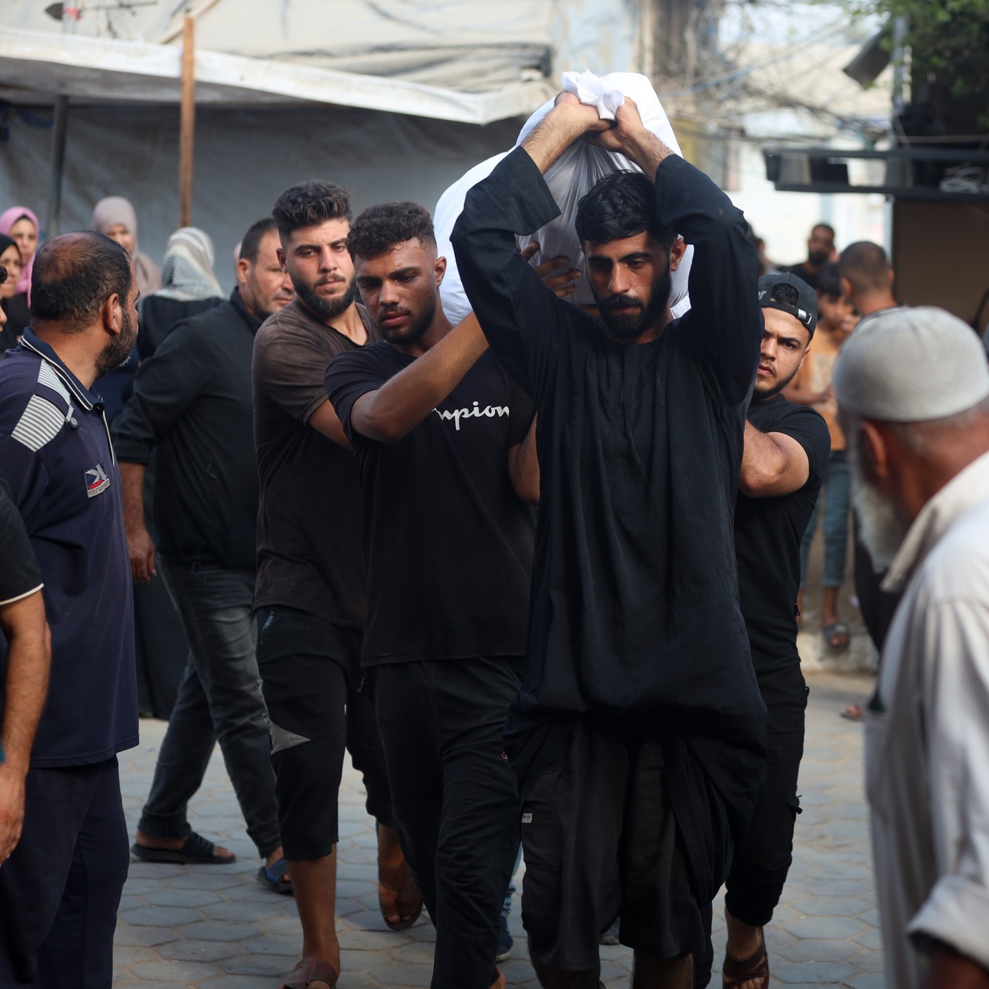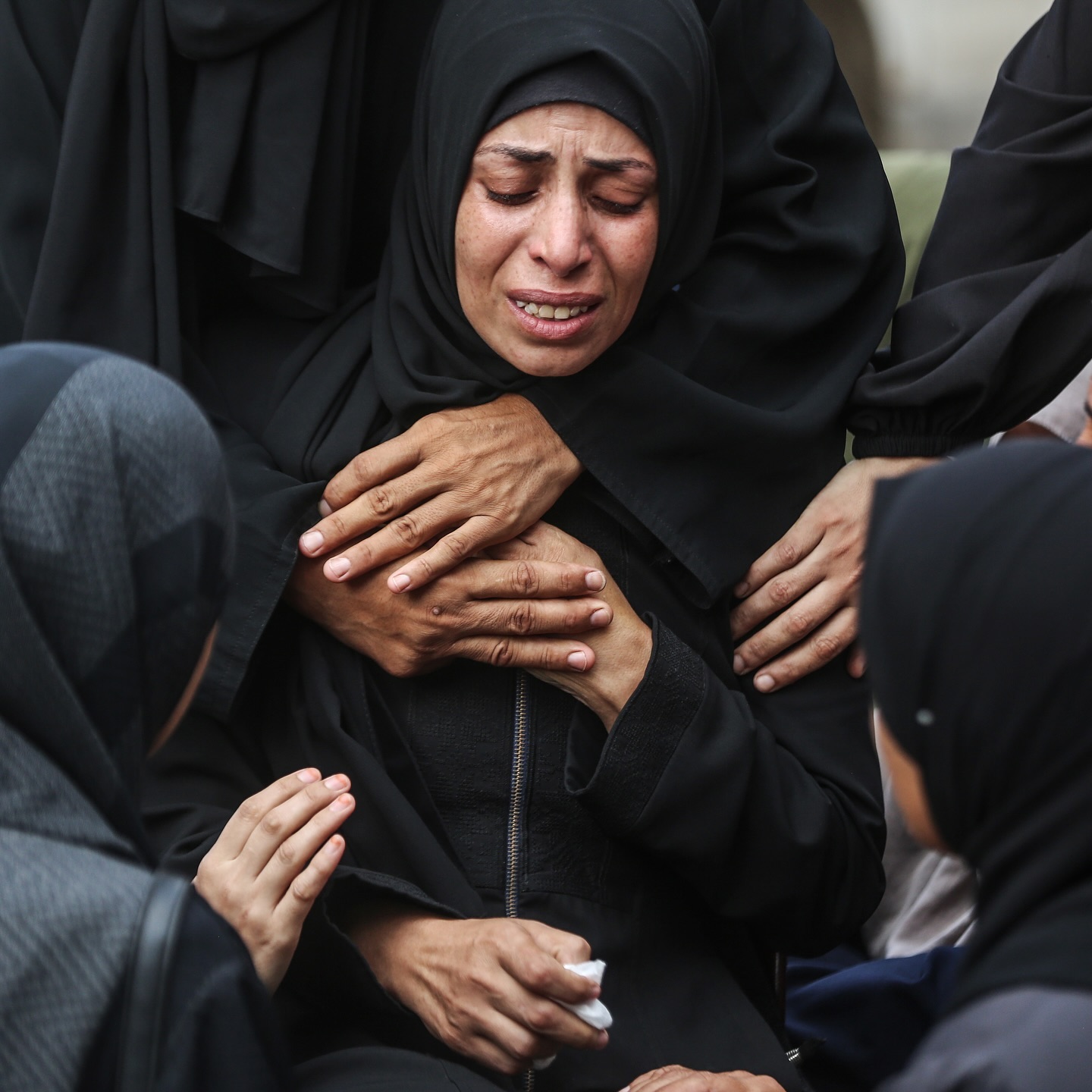 Palestinians mourn their relatives, killed in an Israeli strike, at the Al-Aqsa Martyrs hospital in Deir el-Balah in the central Gaza Strip on August 17, 2024 , photo by majdi fathi