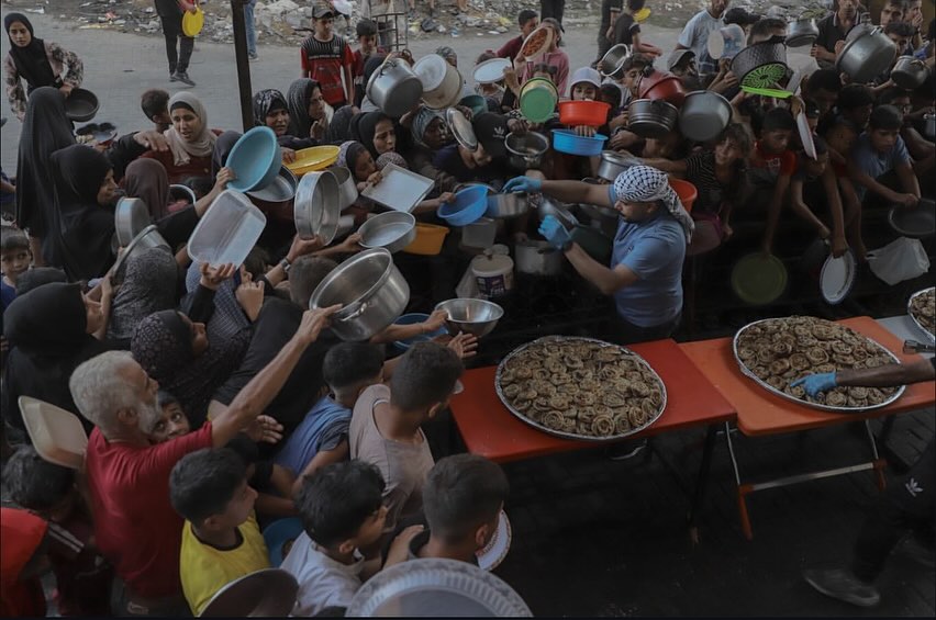 Palestinian citizens try to get food from a takiyat in Beit Lahia, north of the Gaza Strip, amid the famine that is striking the north of the Strip.💔 مواطنون فلسطينيون يحاولون الحصول على الطعام من تكية بيت لاهيا شمال قطاع غزة، في ظل المجاعة التي تضرب شمال القطاع.💔