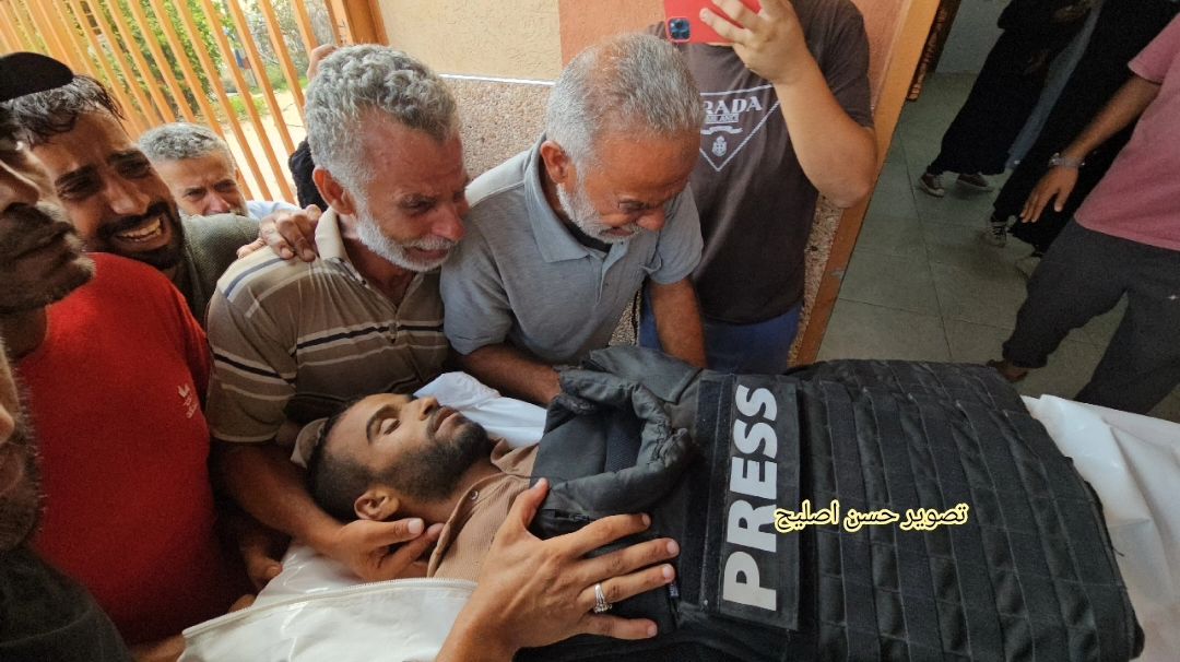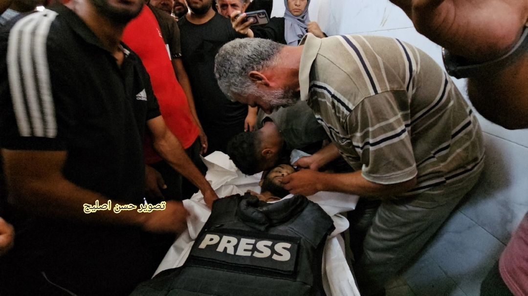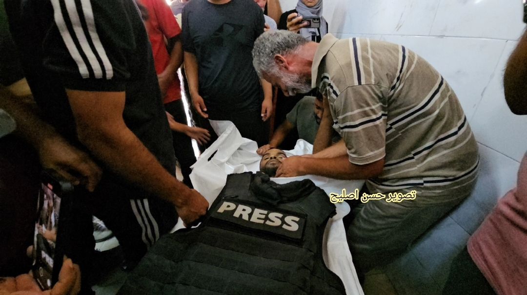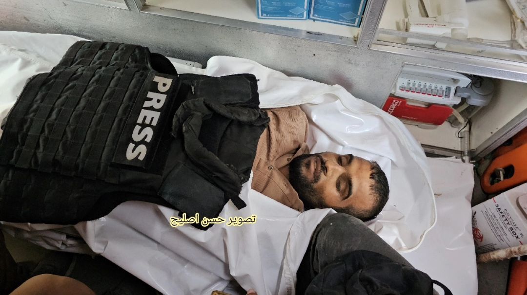 است.ش.هاد الزميل الصحفي إبراهيم محارب بعد العثور على جثمانه قرب مدينة حمد شمال غرب خانيونس والذي فقدت آثاره جراء استهداف الا.حتلا.ل لمجموعة من الصحفيين بالمكان يوم أمس.