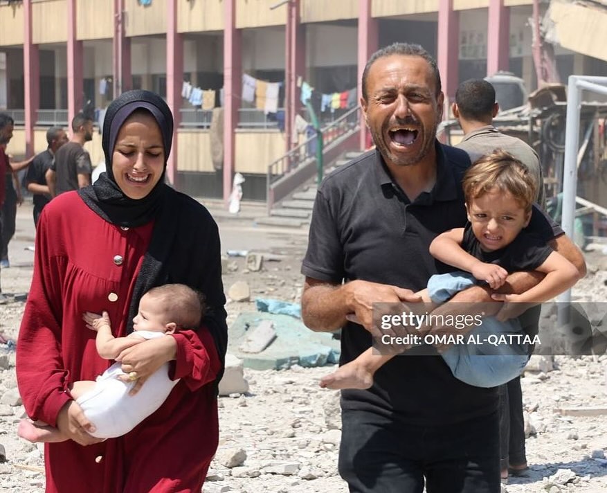 A new massacre.. The effects of the occupation's bombing of the Mustafa Hafez school, which is sheltering displaced people west of Gaza City.💔