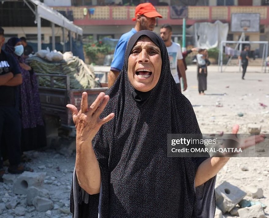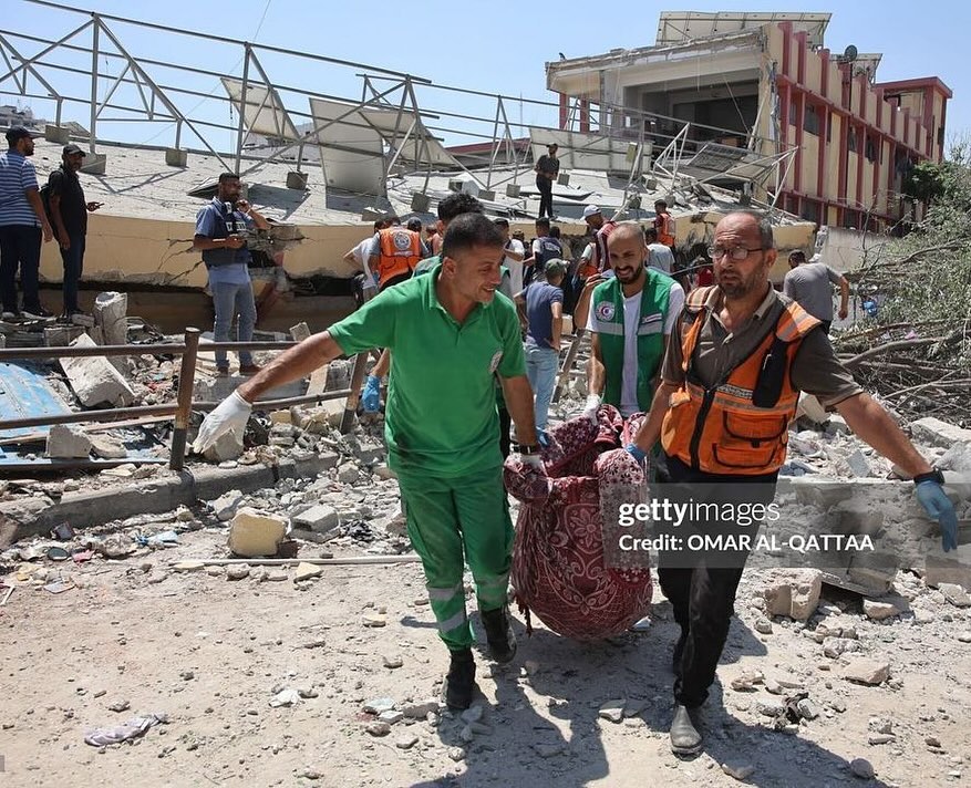 A number of displaced Palestinians were killed after the bombing of a school in Gaza city. By @omarelqattaa شهداء في قصف مدرسة في مدينة غزة