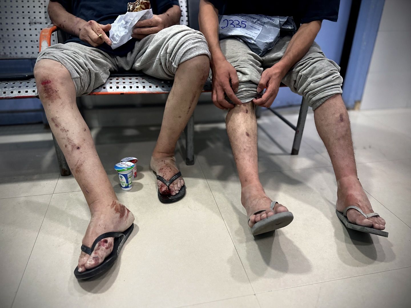 A number of Palestinian prisoners just arrived at Naser hospital in Khan Younis, southern Gaza, after they were released by the occupation forces through Karam Abu Salem crossing with Gaza. By @hassan_eslaih وصول عدد من الاسرى إلى مجمع ناصر الطبي في خانيونس بعد الإفراج عنهم من قبل قوات الاحتلال