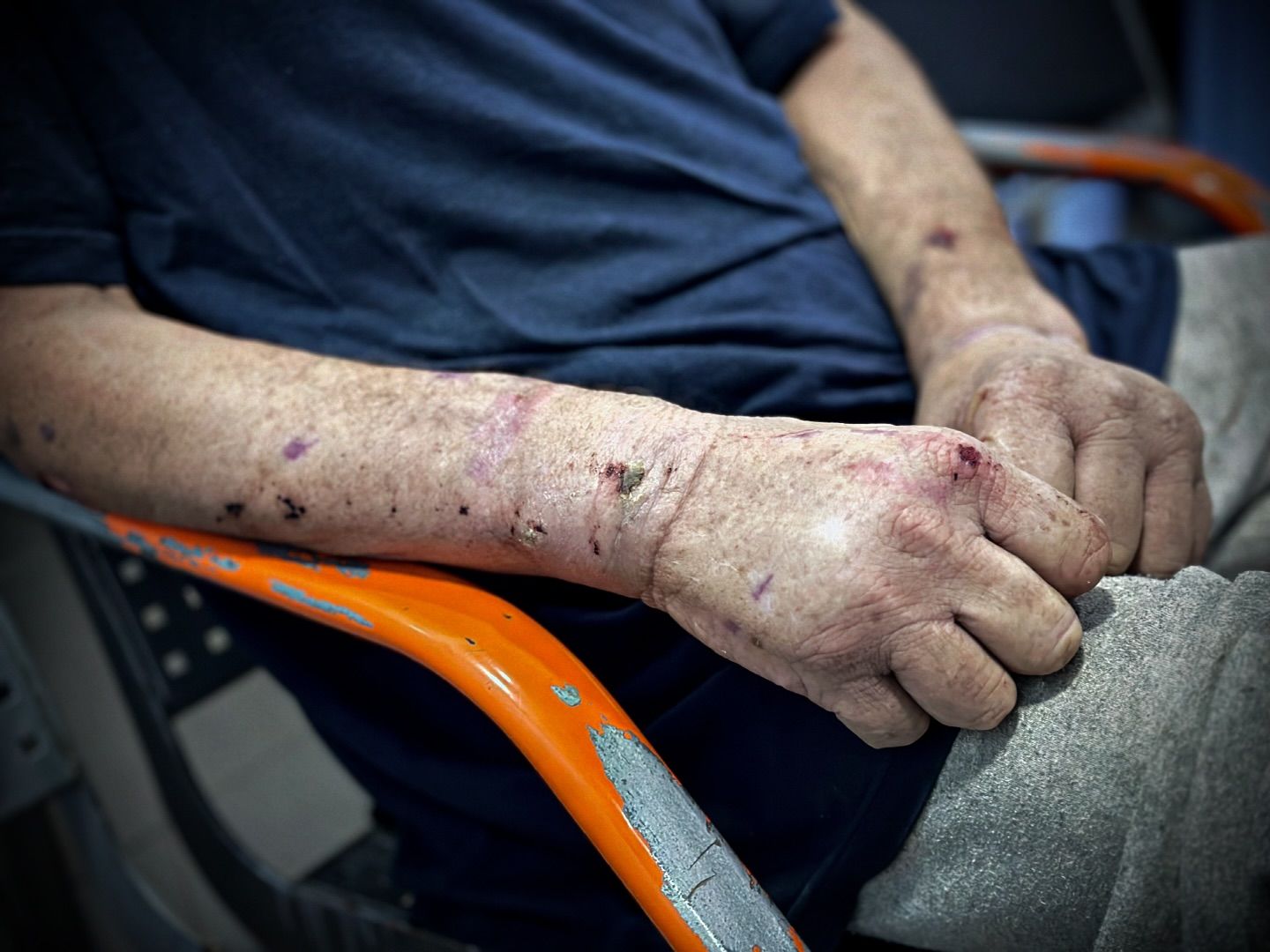 The elderly Palestinian Waleed Habib, from Shejaeya neighborhood in Gaza City, who was released after months of arrest and torture in occupation jails. By @hassan_eslaih الافراج عن الأسير المسن وليد إبراهيم محمد حبيب من حي الشجاعية، بعد اشهر من الاعتقال و التعذيب الذي تعرض له في سجون الاحتلال