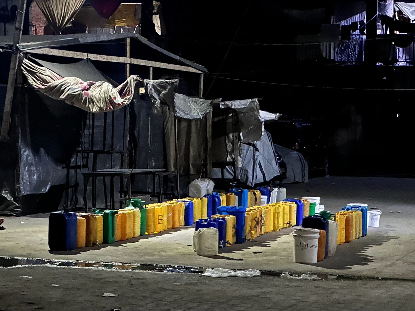 That photo was taken just a little while ago at one of the shelters. Someone told me that since this morning until this evening, they have been waiting for the water trucks. How many children have gone to sleep thirsty? التقطت تلك الصورة قبل قليل من احد مراكز الإيواء يخبرني أحدهم انهم منذ صباح اليوم وحتى ذلك المساء منتظرين العربات التي تقل المياه كم طفل نام وهو عطشان