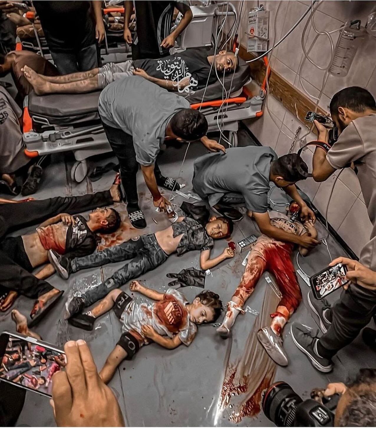 This is one of the few scenes in Gaza hospitals…this is a picture you will see and scroll through, but those still alive in the picture will continue suffering in unbearable pain 💔💔