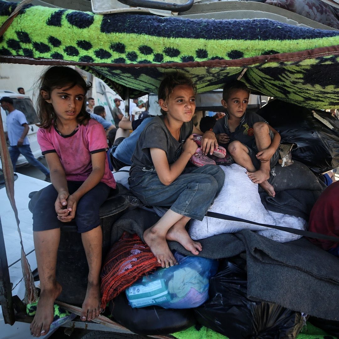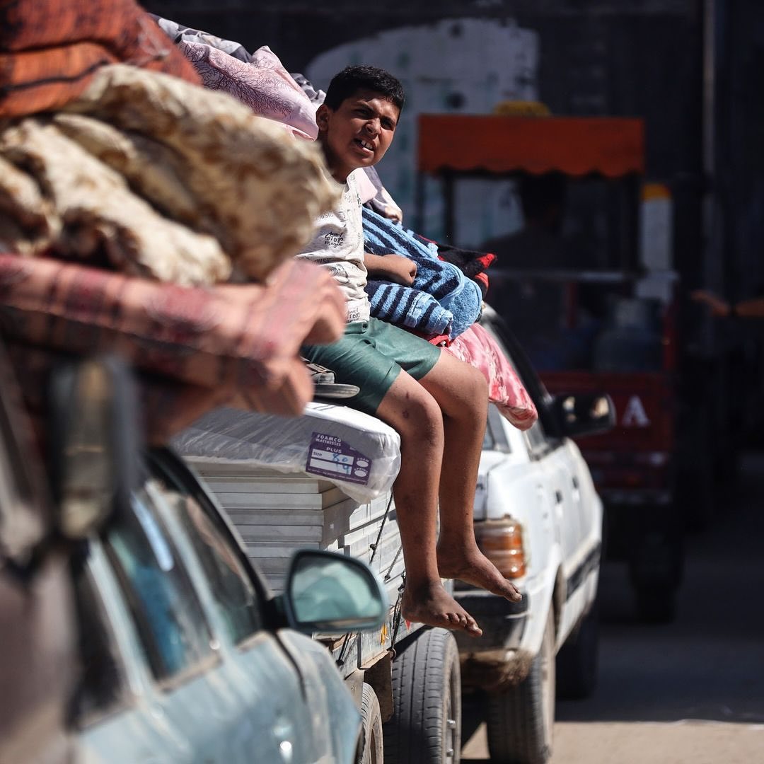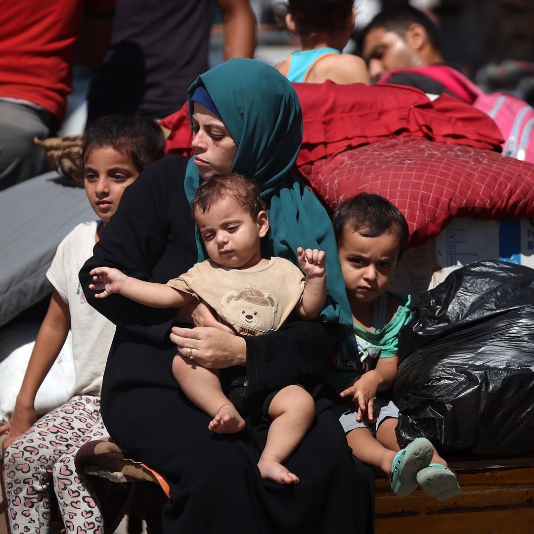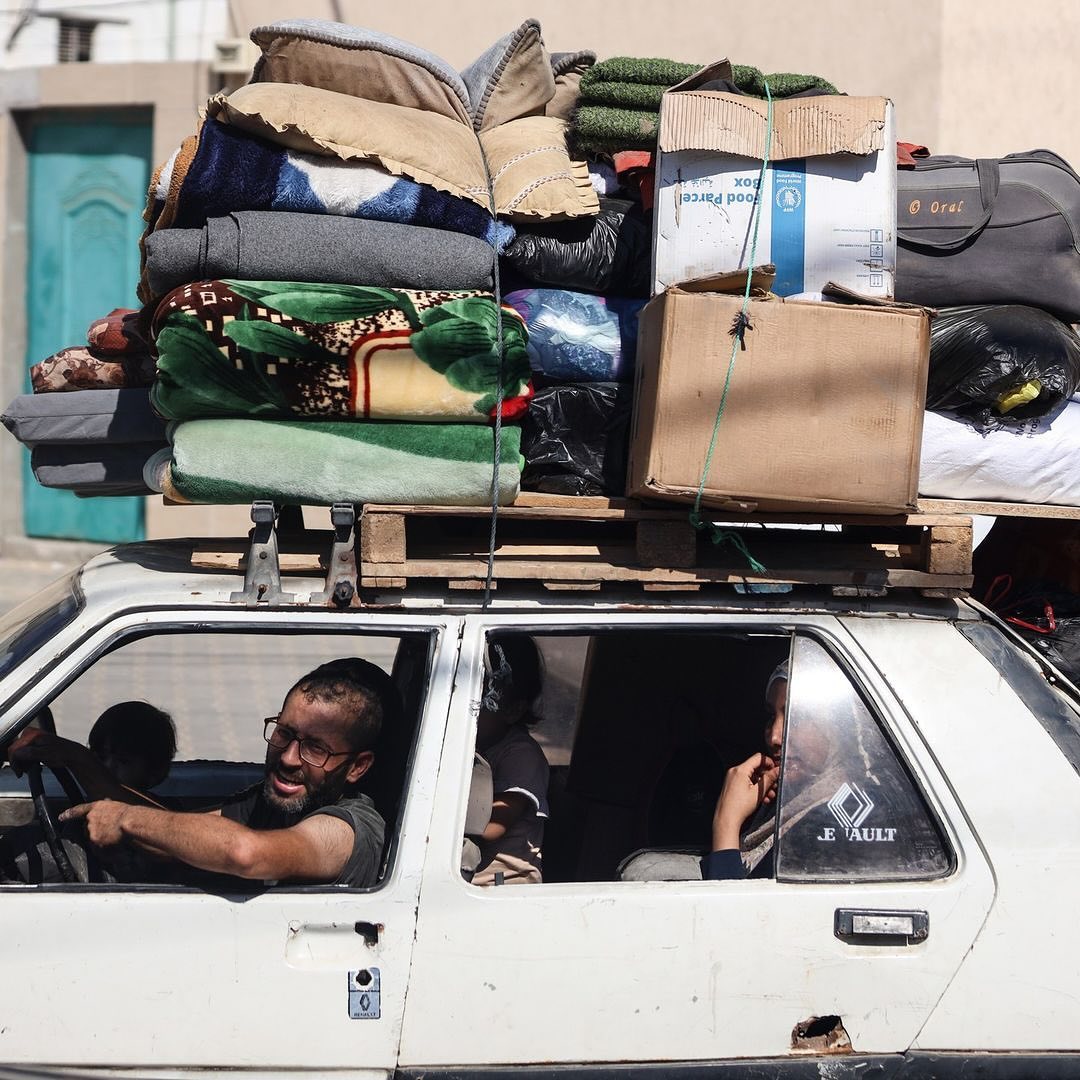 Palestinians flee with their families from Deir Al Balah, central Gaza city following the threats of the Israeli occupation forces to invade the area. By @majdi_fathi نزوح المواطنين من دير البلح وسط القطاع بعد تهديدات الاحتلال باجتياح المنطقة