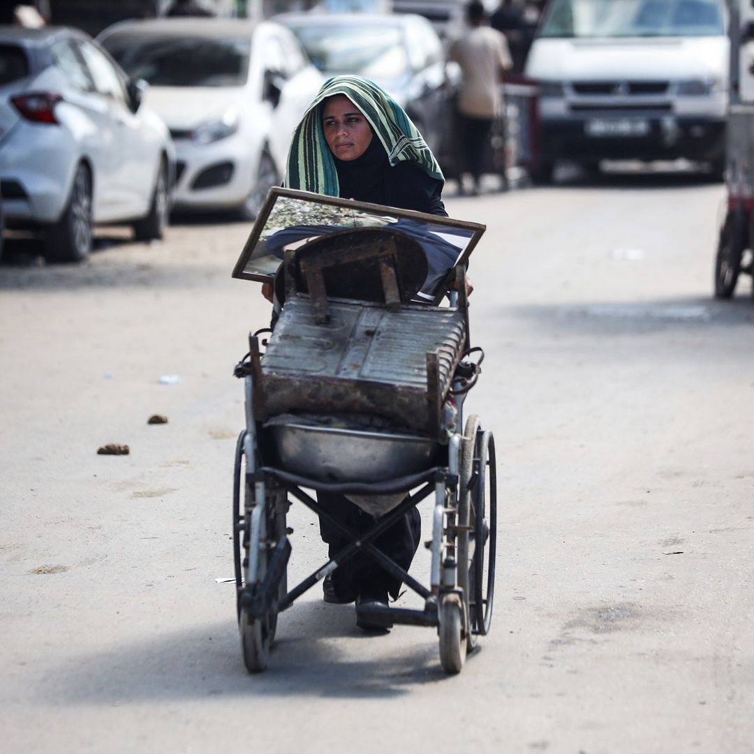Palestinians flee with their belongings Deir el-Balah in the central Gaza Strip on August 21, 2024, photo by majdi fathi