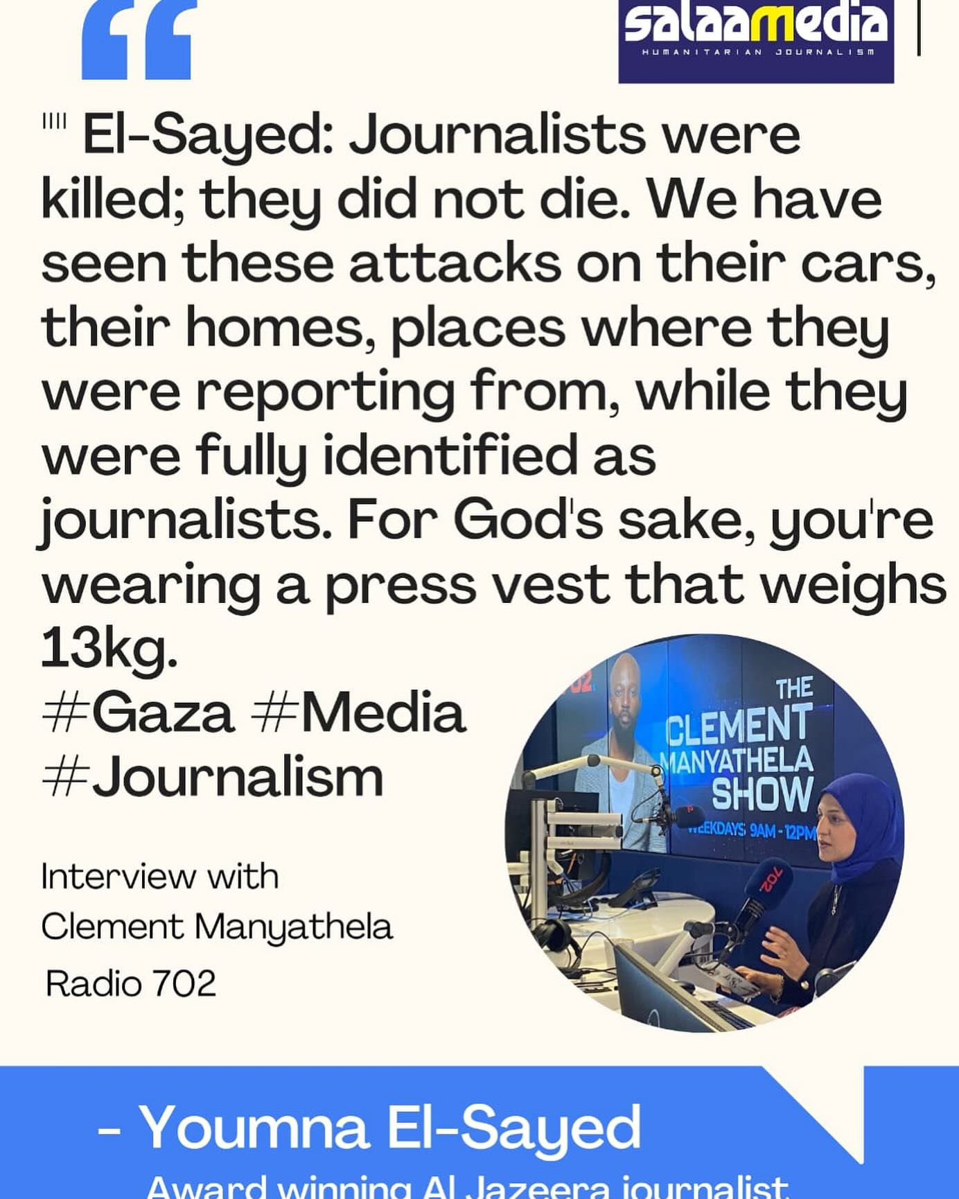 مهمتنا كصحفيين لا تقتصر على نقل الحقيقة وفضح الجرائم التي يرتكبها الجيش الإسرائيلي، بل نتحمل أيضًا متاعب الحياة اليومية التي لم نعتد عليها ولن نعتاد عليها. As journalists, our mission is not only to convey the truth and expose the crimes committed by the Israeli army, but we also endure the troubles of daily life that we are not accustomed to and will not become accustomed to.